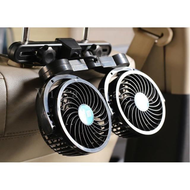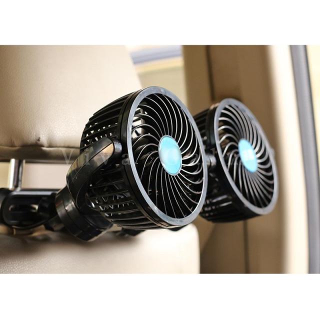 12V ツインファン 車載扇風機 ダブル 角度調節 首振り 換気 風量調節 カスタム パーツ シガーソケット 冷房