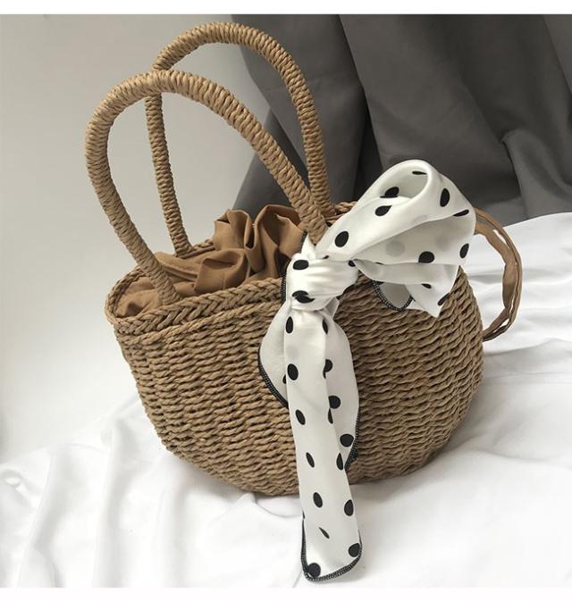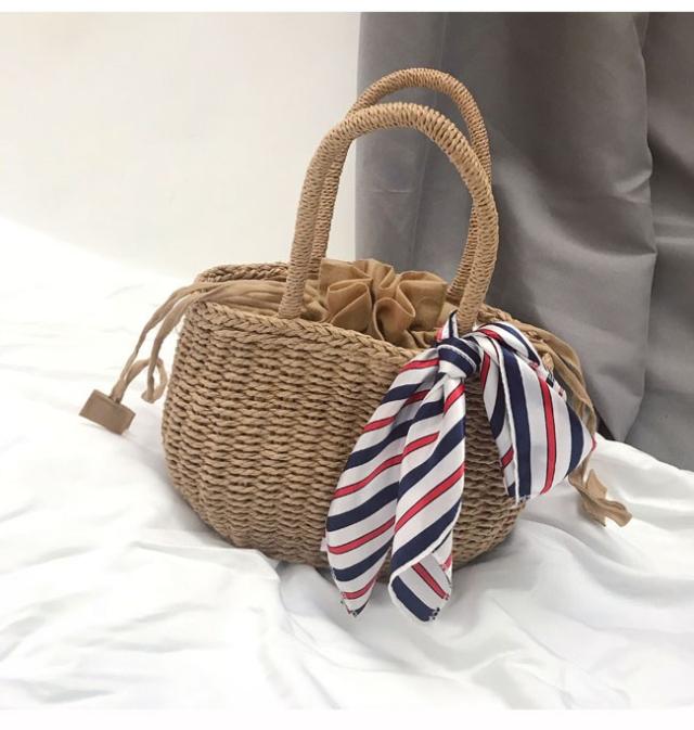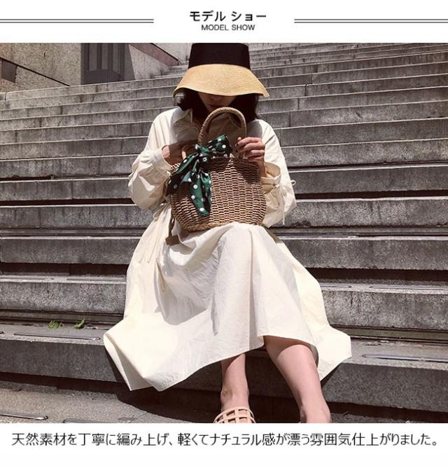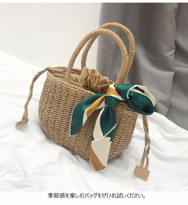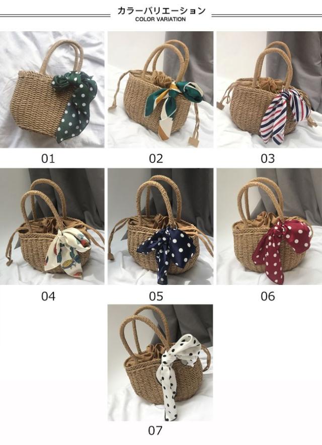 かごバッグ 手提げ ナチュラル スカーフ 軽量 カジュアル ミニバッグ 軽量 手編み カバン おしゃれ 春 夏