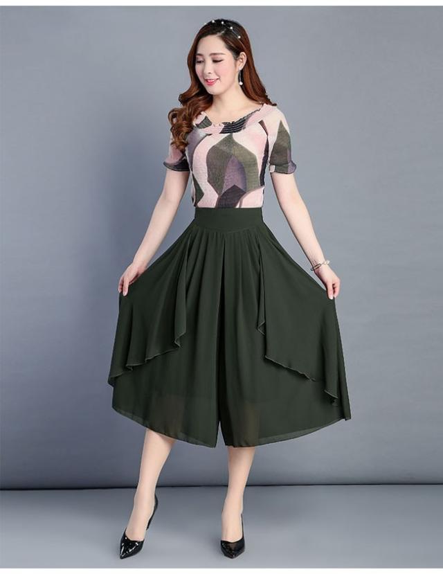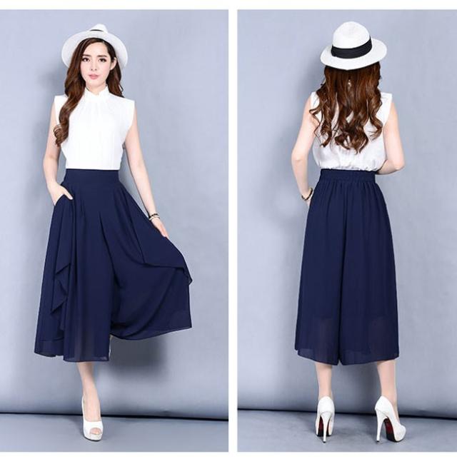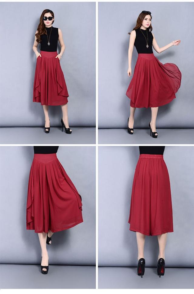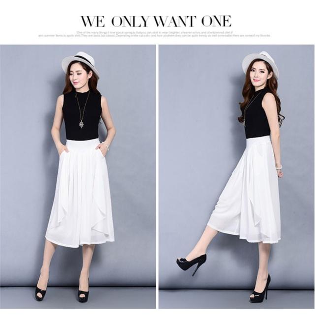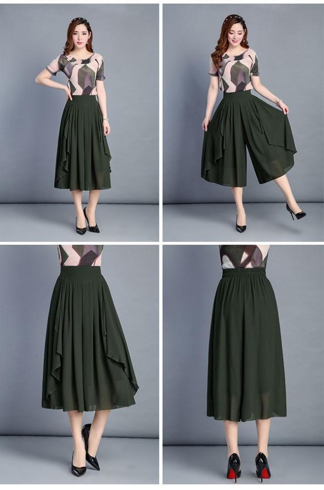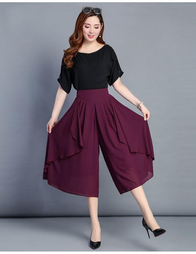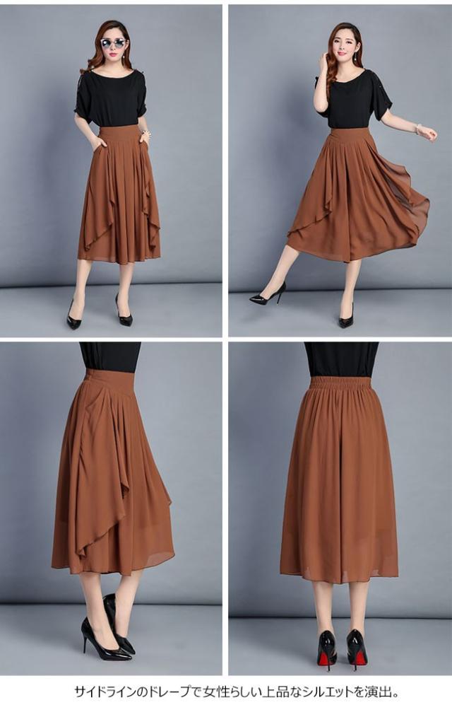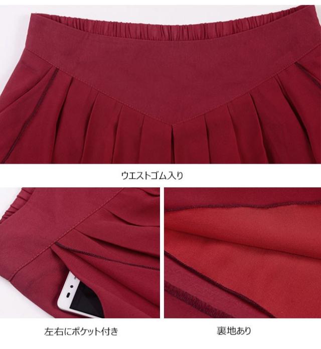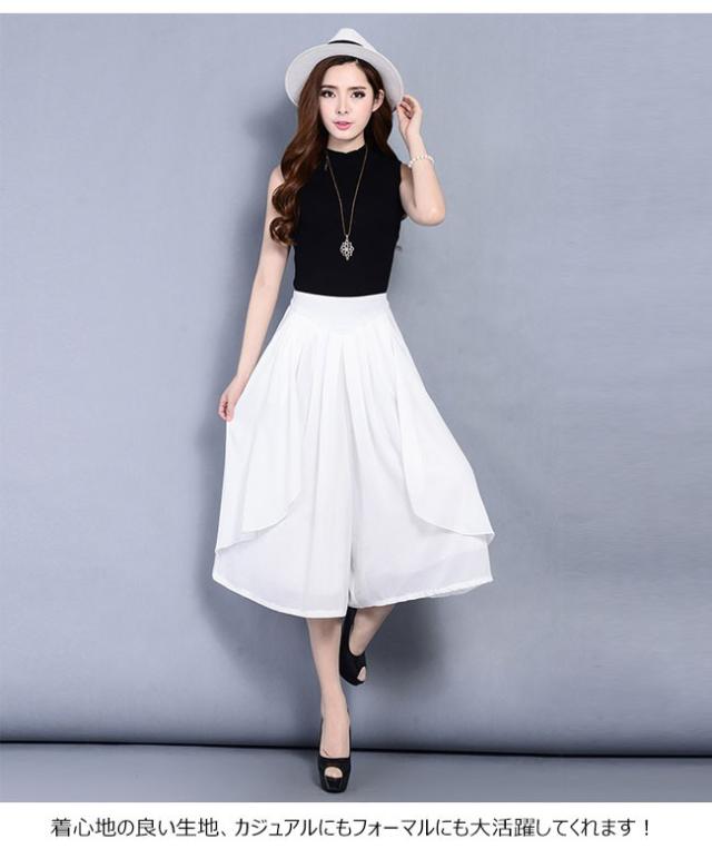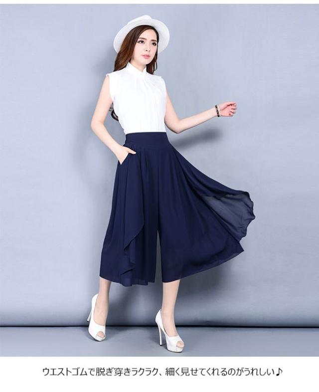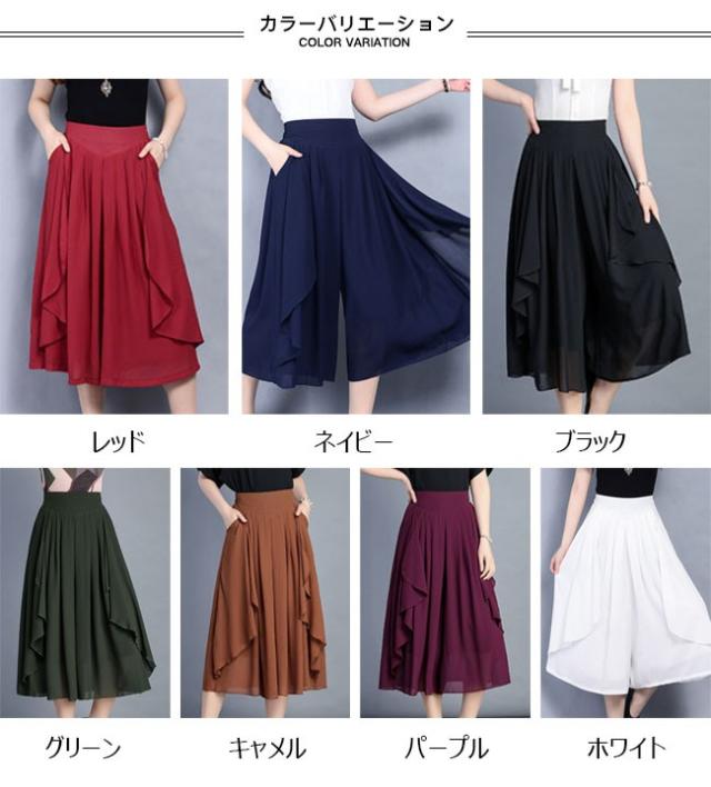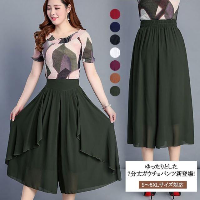 ガウチョパンツ レディース シフォン ハイウエスト 7分丈 無地 大きいサイズ ワイドパンツ ボトムス ふんわり ゆったり 2020春夏新作