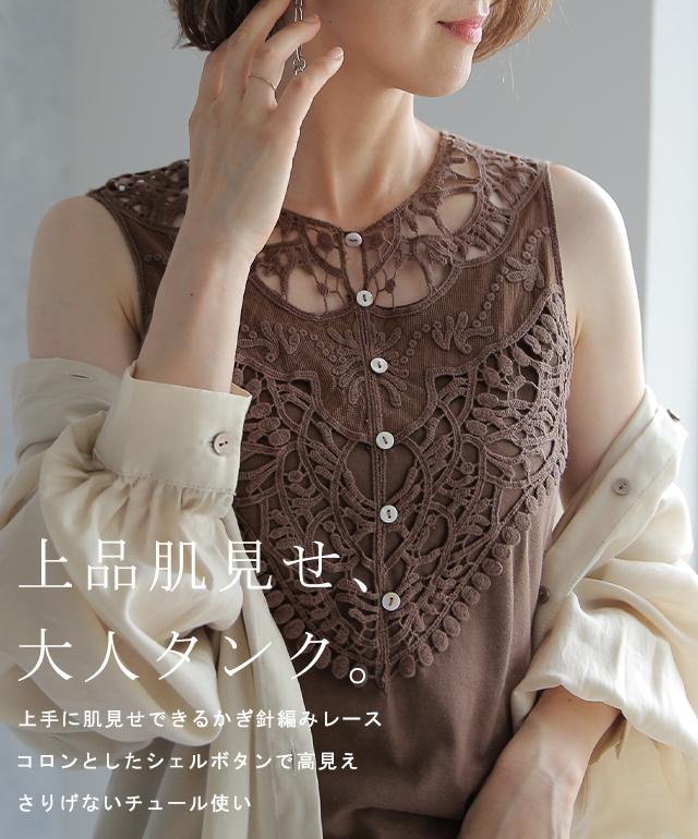 「濃淡で引き立つ。オトナのレース」 タンクトップ 大人MUSE レイヤード レディース タンク トップス ノースリーブ レースタンクトップ レイヤードキャミソール 大きいサイズ 冬 秋 秋新作
