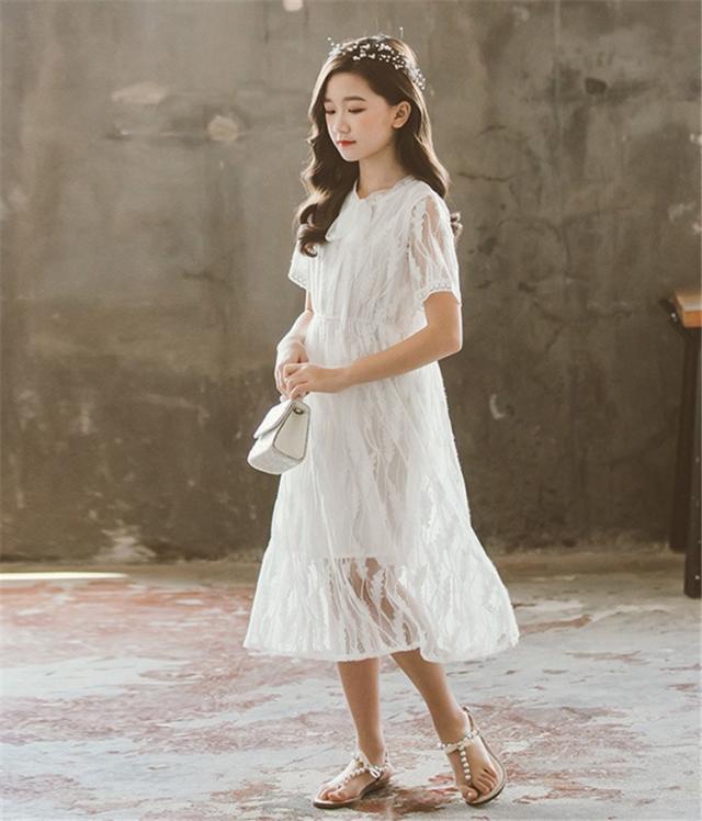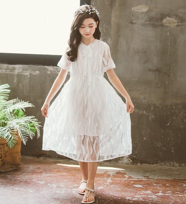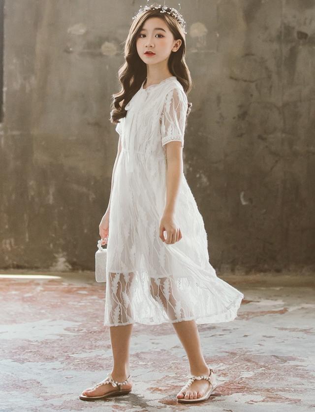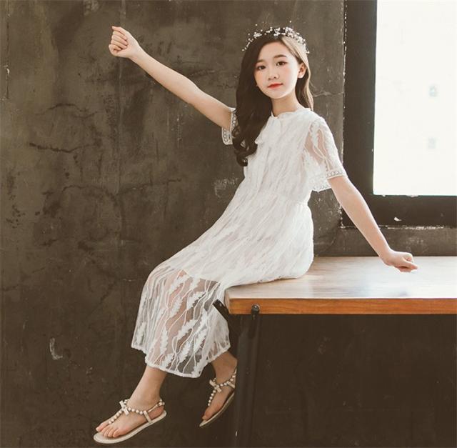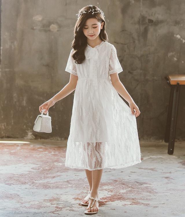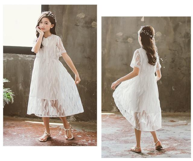 ワンピース キッズ 子供服 女の子 夏 キッズワンピース レースワンピース 半袖 ロング丈 子供ドレス ジュニア 子ども お姫様 おしゃれ 可愛い カジュアル 新品