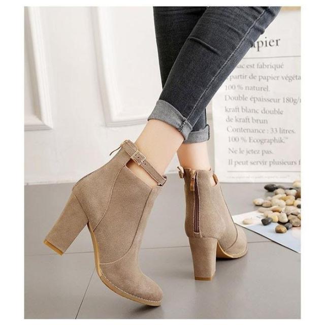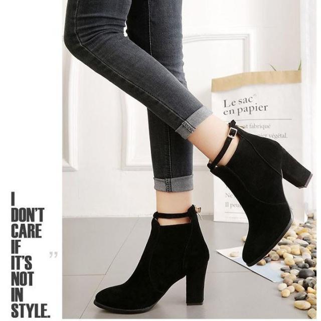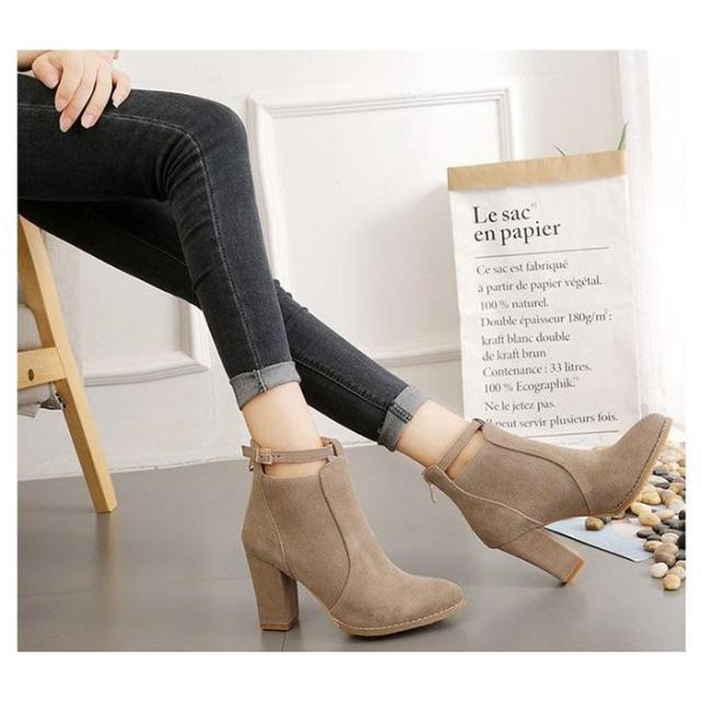 ショートブーツ レディース ローヒール 厚底 シューズ 靴 無地 カジュアルシューズ 美脚 歩きやすい 2019年秋冬新作