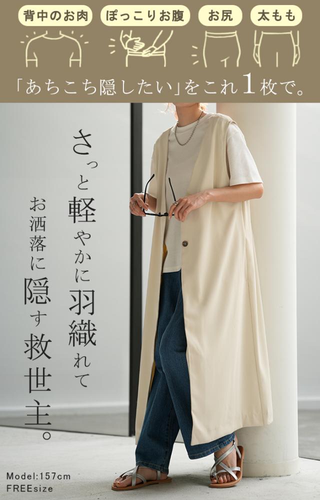 気になる腰回りや下半身をカバーしつつ、おしゃれな印象を与えてくれます。