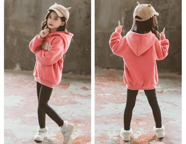 パーカー 女の子 キッズパーカー 長袖 ロング丈 トップス 無地 防寒 パーカー 裏起毛 カジュアル スウェット春秋冬 韓国子供服