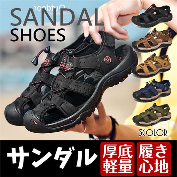 サンダル メンズ 本革 ブランド 耐衝撃 衝撃吸収 滑りにくい 厚底 スポーツサンダル コンフォートサンダル おしゃれ