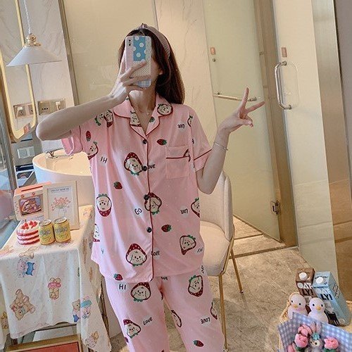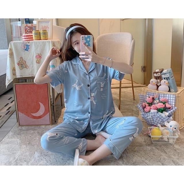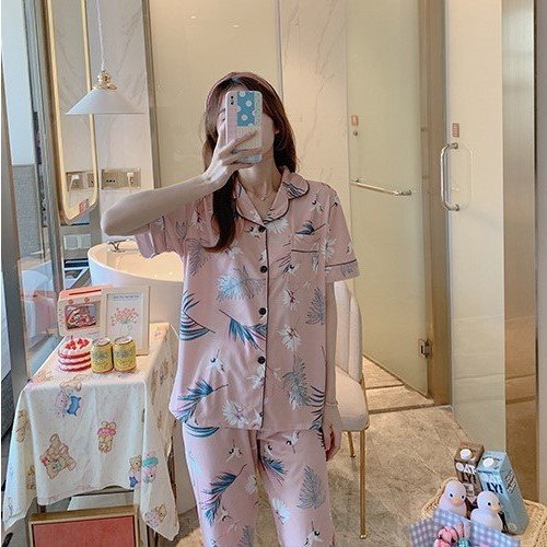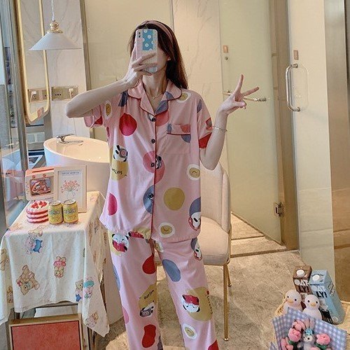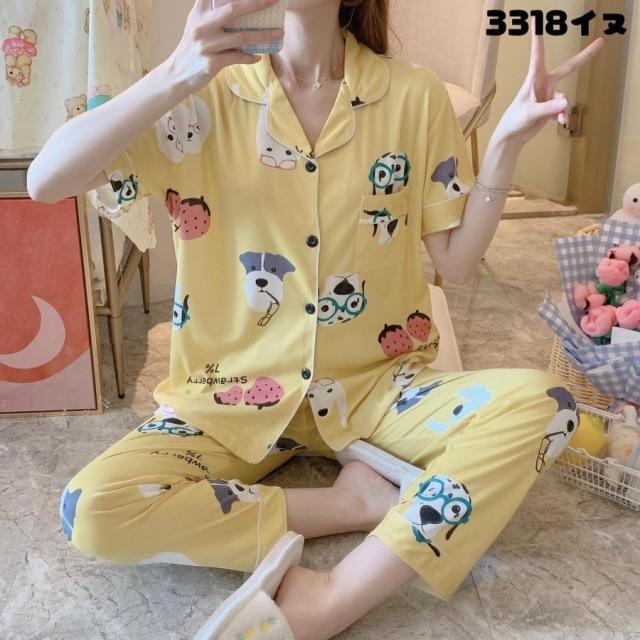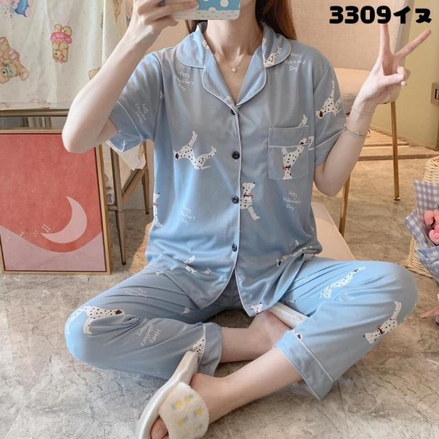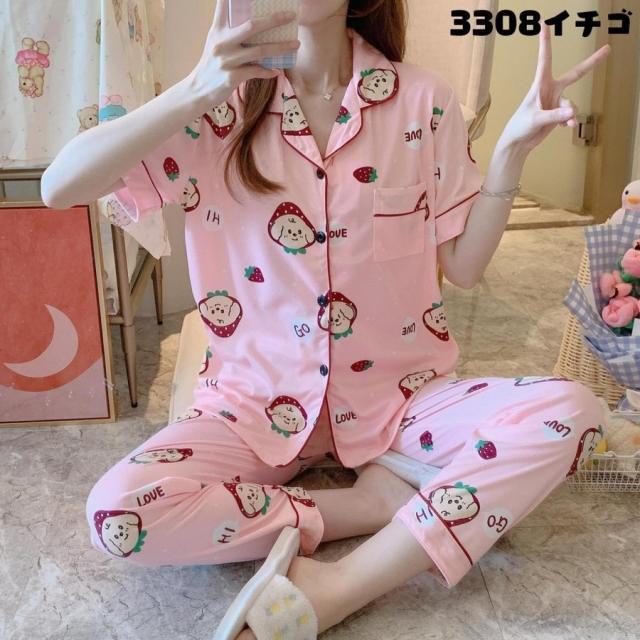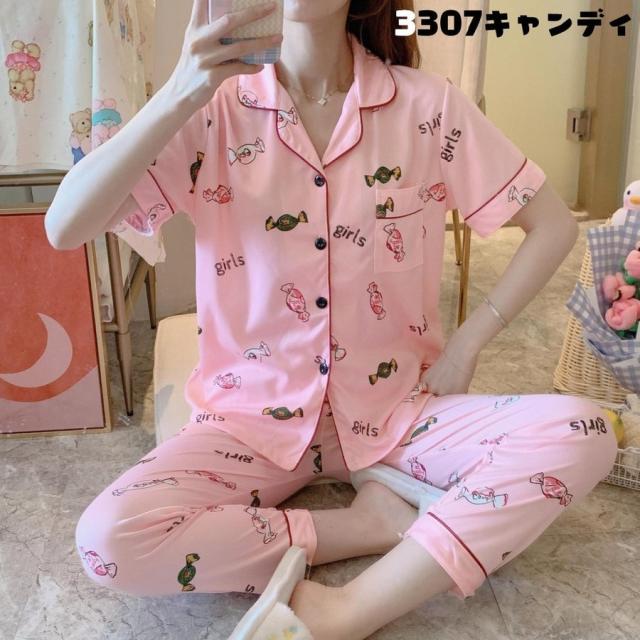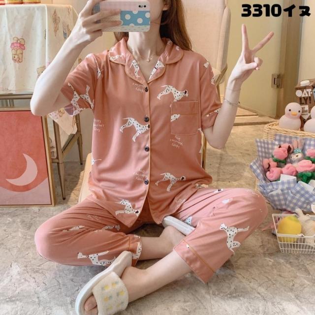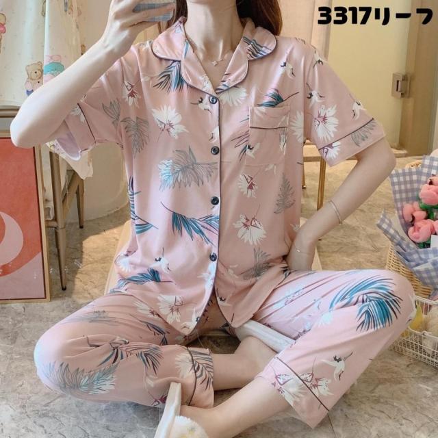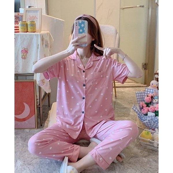 パジャマ ルームウェア セットアップ 上下セット 2点セット レディース 女性 トップス ボトムス 半袖 ロングパンツ 前ボタン 総柄 花柄 ハート