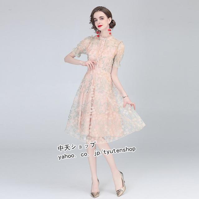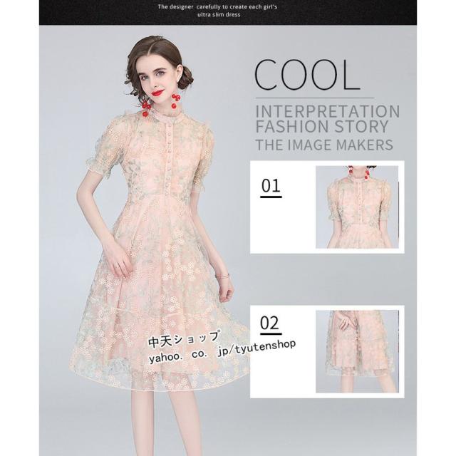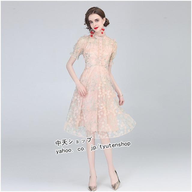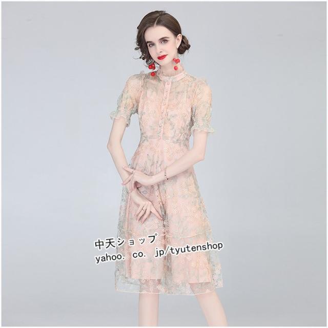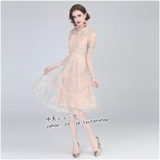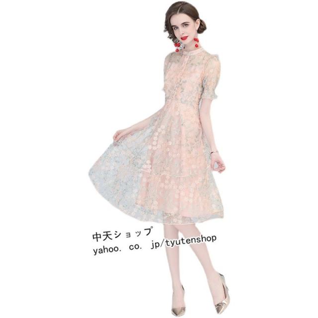 ワンピース レディース 夏 半袖 きれいめ 膝丈ワンピース おしゃれ チュールワンピース 夏ワンピース カジュアル 気質 大人 花柄 透け感 淑女 エレガント 大人