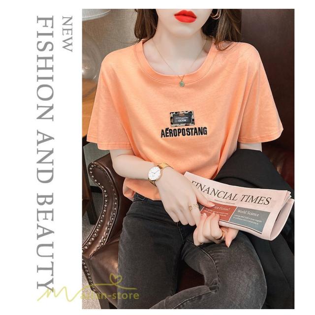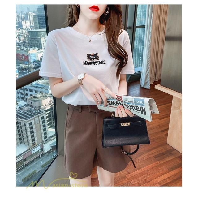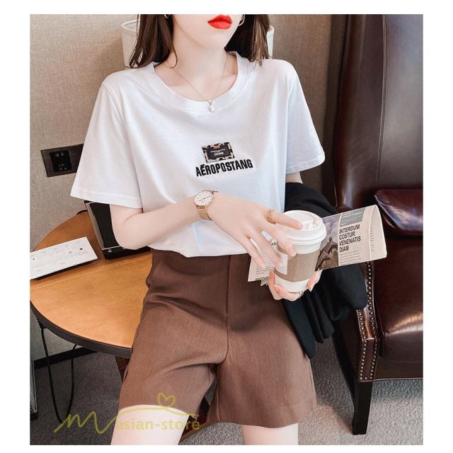 tシャツ カットソー レディース 着痩せ 夏コーデ 新作 お出かけ 刺繍 韓国風 半袖 丸首 クルーネック 着回し ホワイト 白 ワイドTシャツ ゆったり おしゃれ 人気