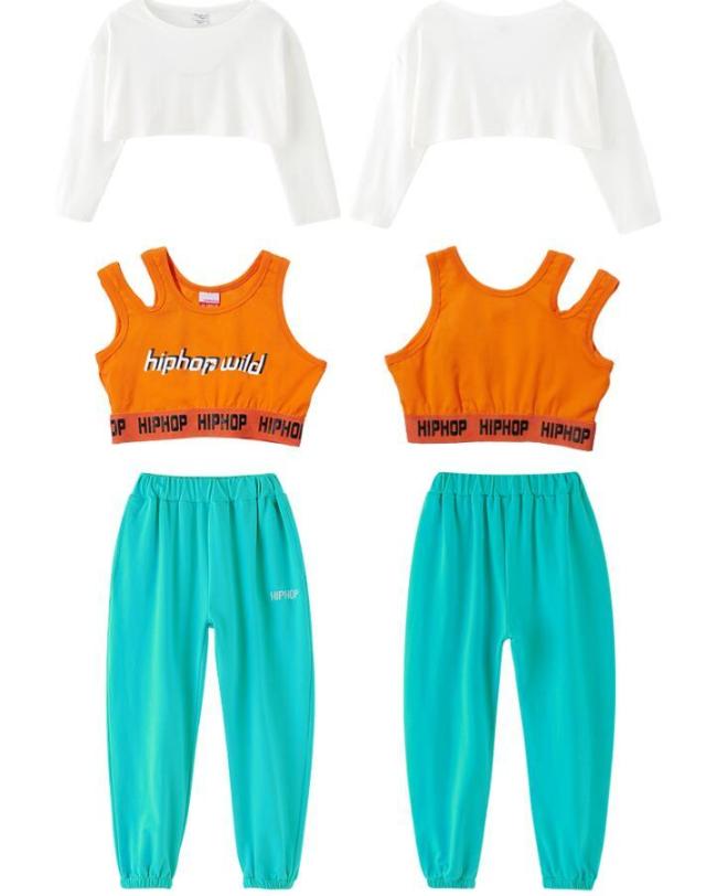 キッズ ダンス衣装 ヒップホップ へそ出し トップス パンツ チアガール ジャズダンス セットアップ 子供服 ダンスパンツ HIPHOP 演出服 ステージ衣装