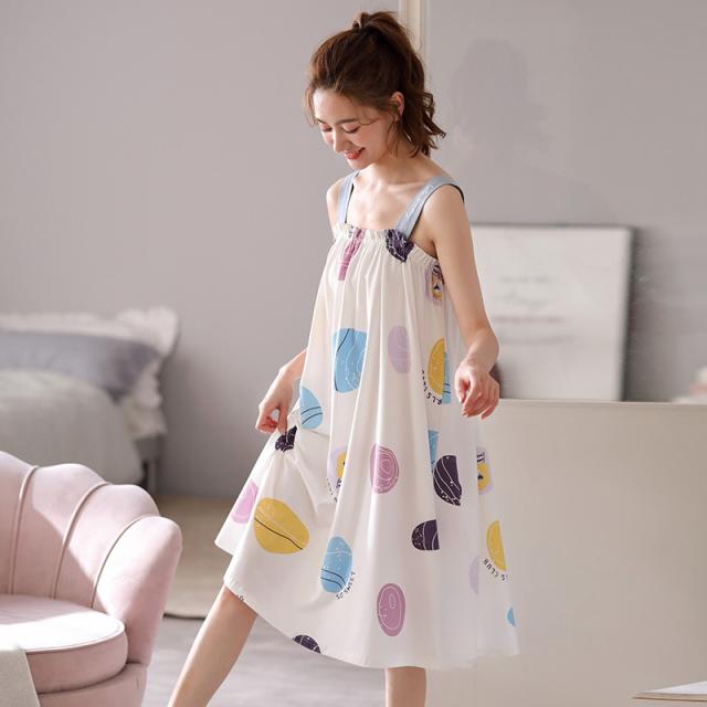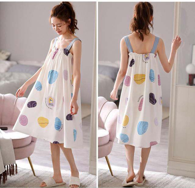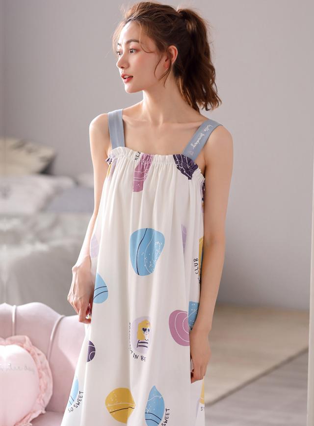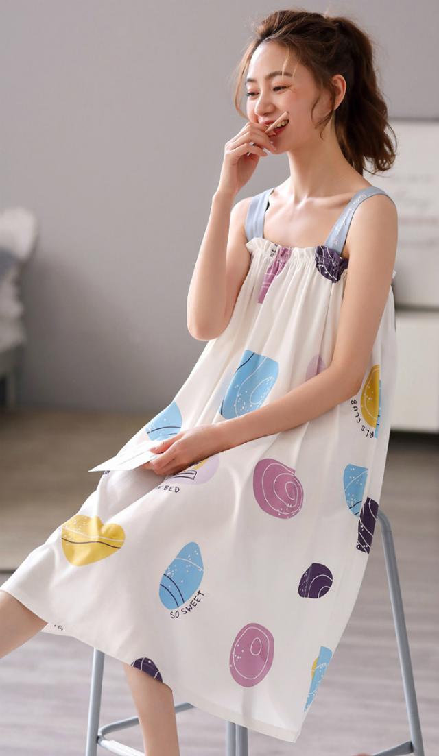 ナイトウェア ルームウェア パジャマ 部屋着 レディース リラックスウェア ワンピース ドット柄 袖なし パープル グリーン ホワイトハイセンス