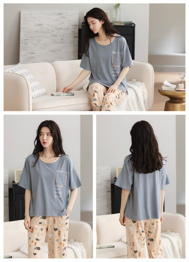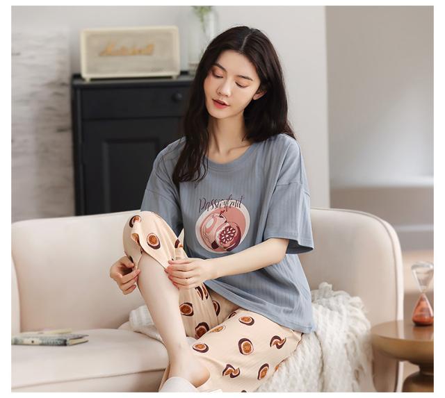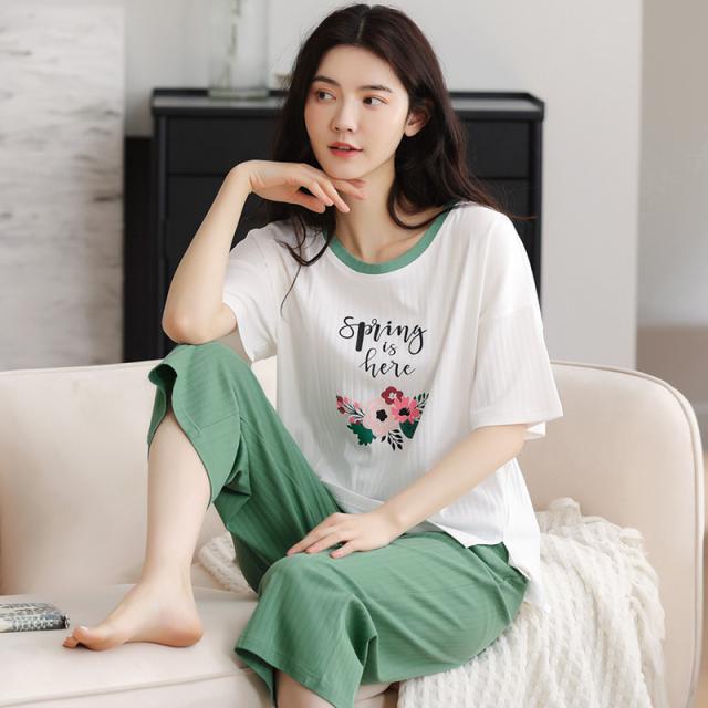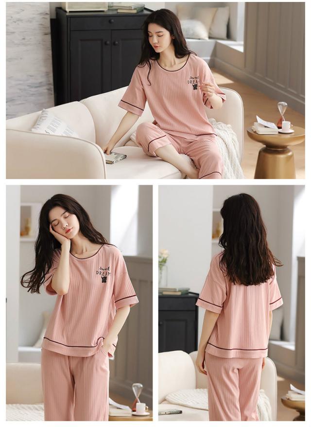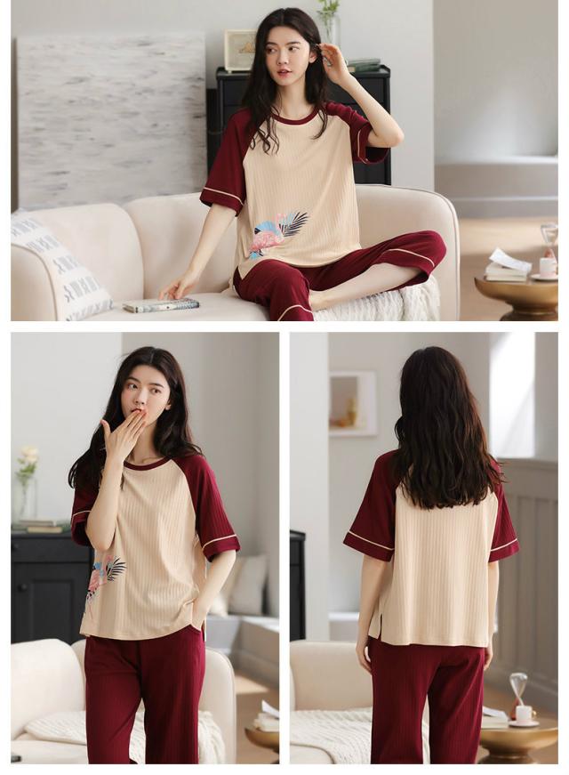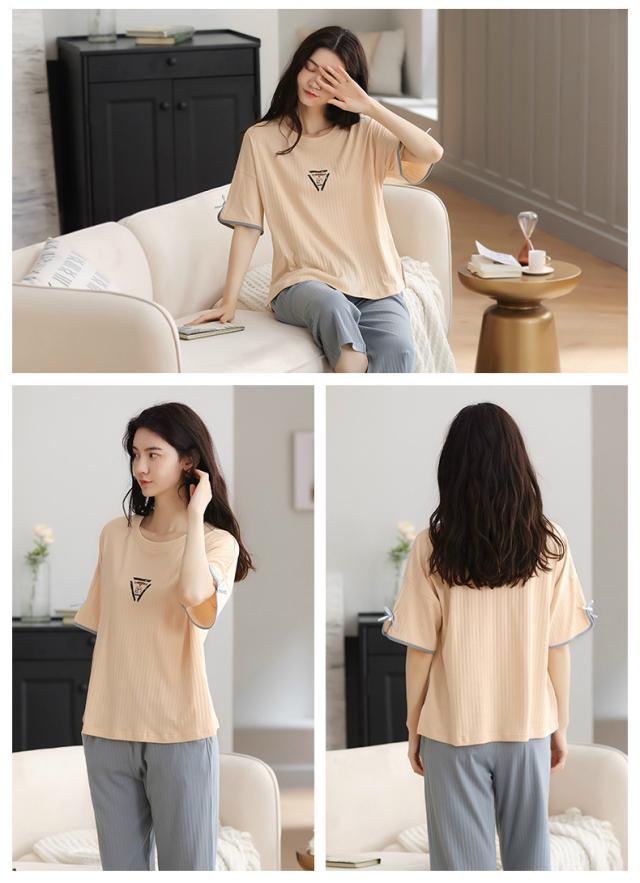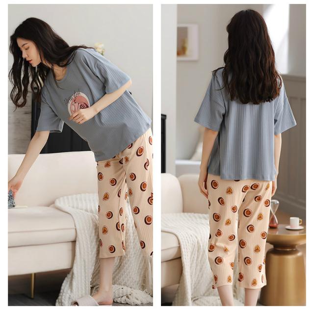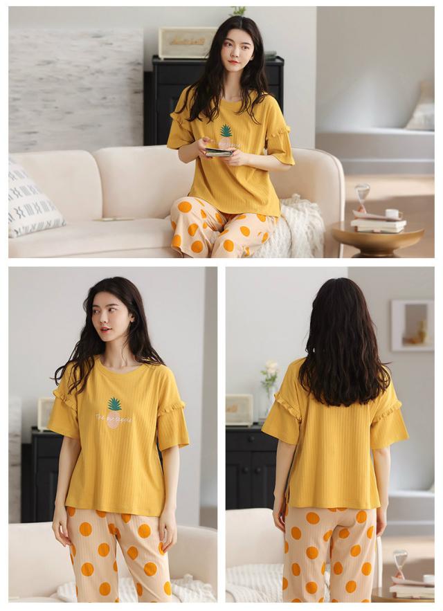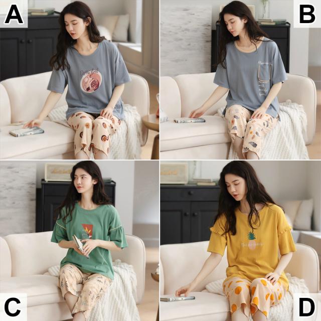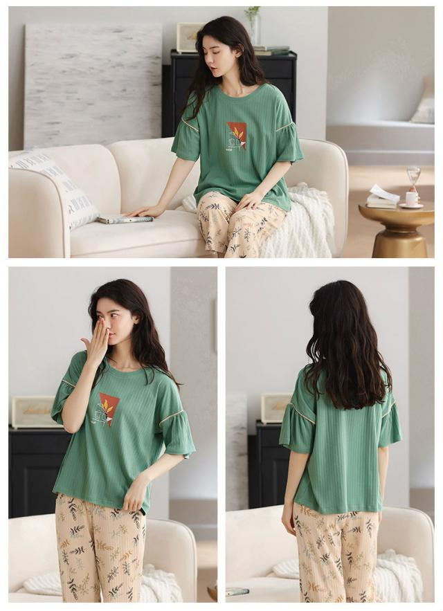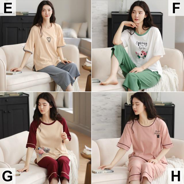 ナイトウェア ルームウェア パジャマ 部屋着 レディース リラックスウェア 半袖 半端丈 カジュアル グリーン ホワイト オレンジ イエロー ボルドー
