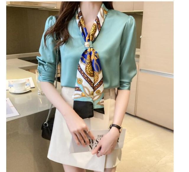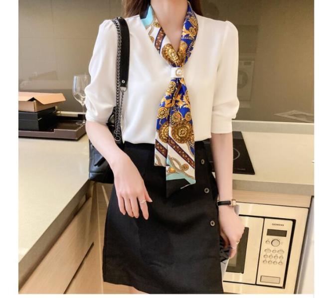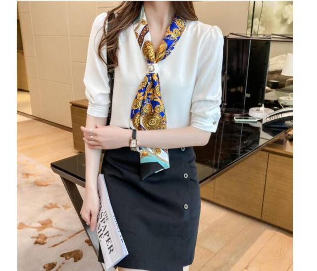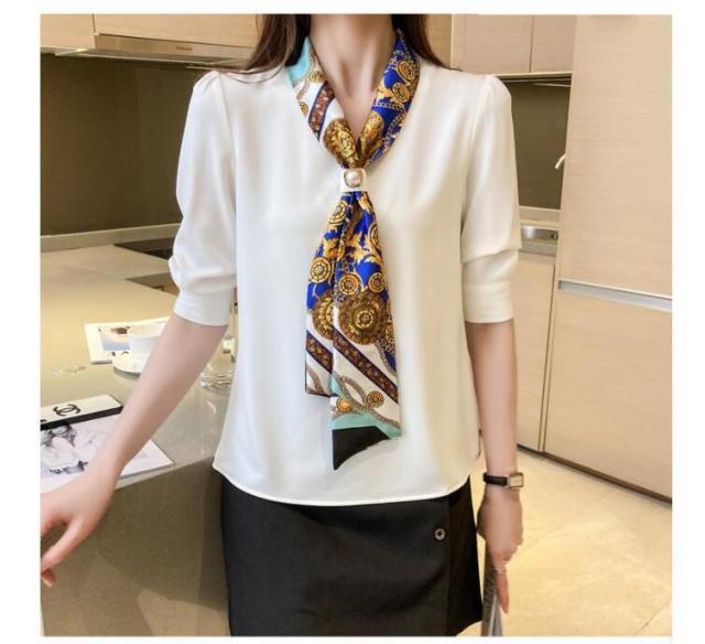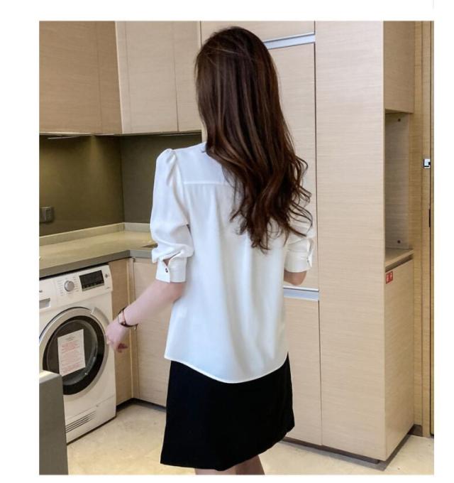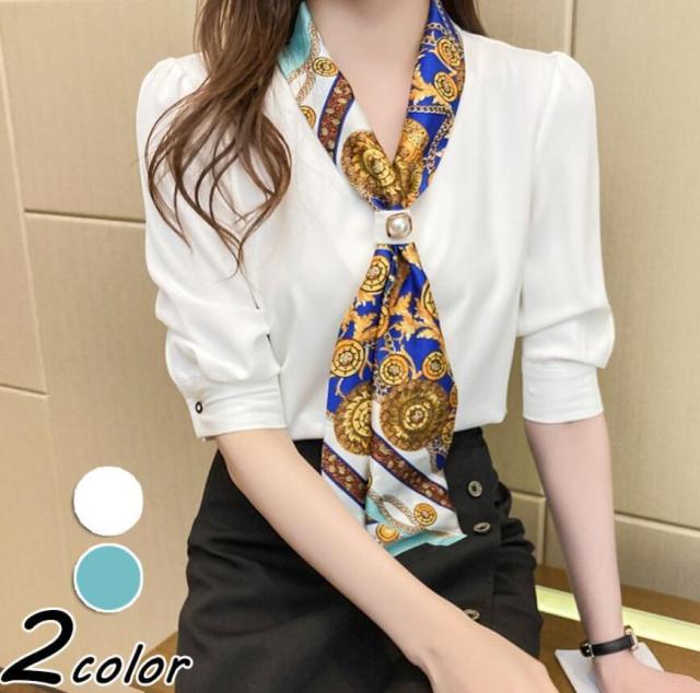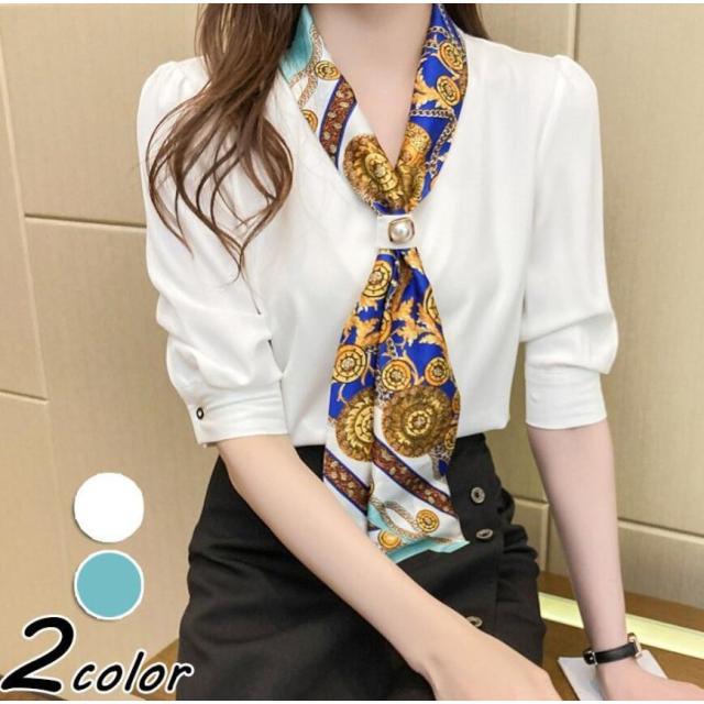 ブラウス レディース 40代 30代 50代 ブラウス 白シフォンシャツ 五分袖トップス リボンネックブラウス 大人上品 通勤 OL オシャレ シャツ 春夏新作
