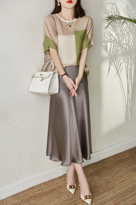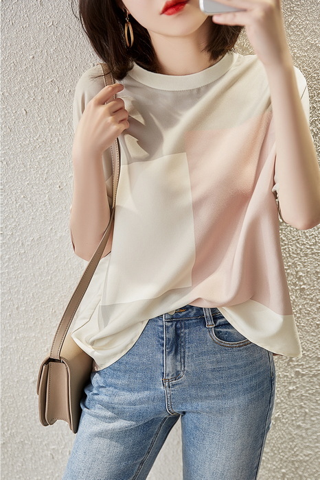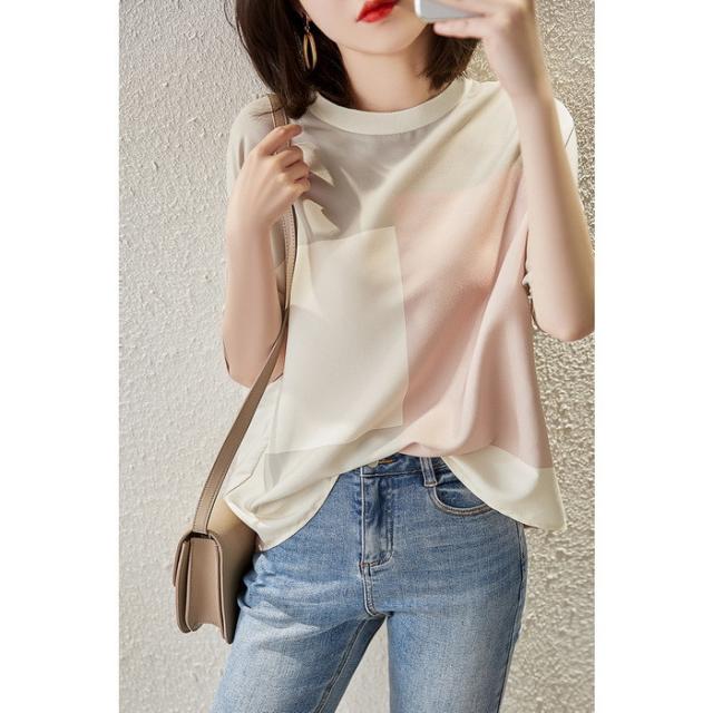 Tシャツ レディース 40代 春夏新作 上品Tシャツ シフォンブラウス おしゃれ 配色 半袖トップス オシャレ通勤 大人上品 ゆったりtシャツ 30代 50代 カジュアル