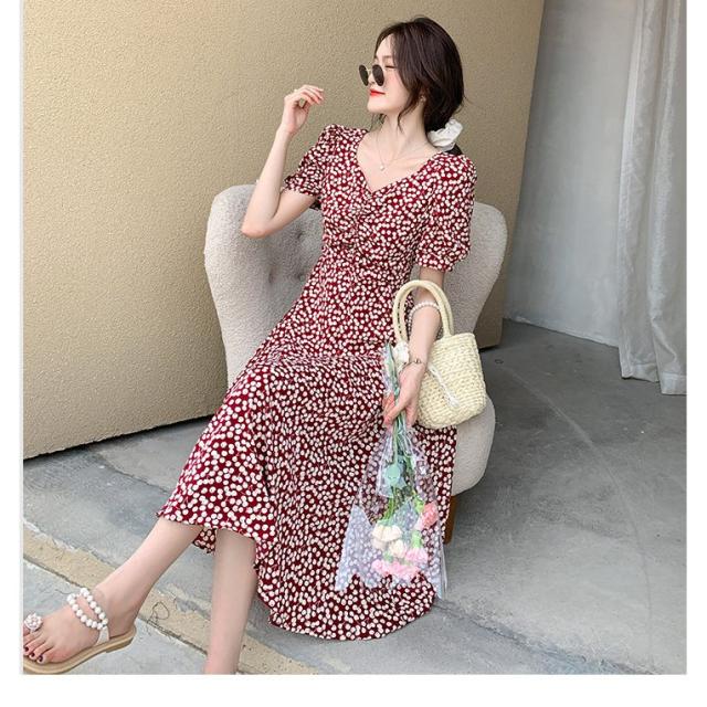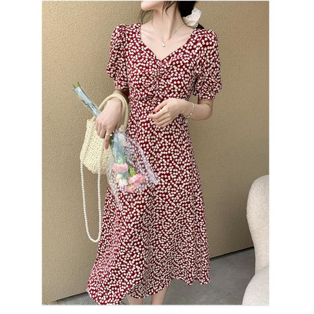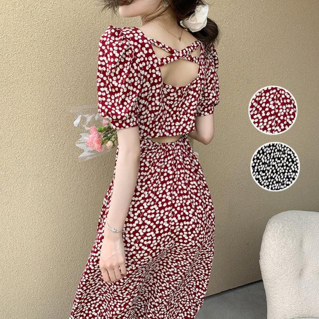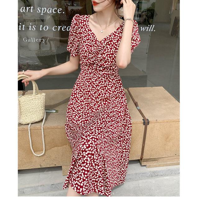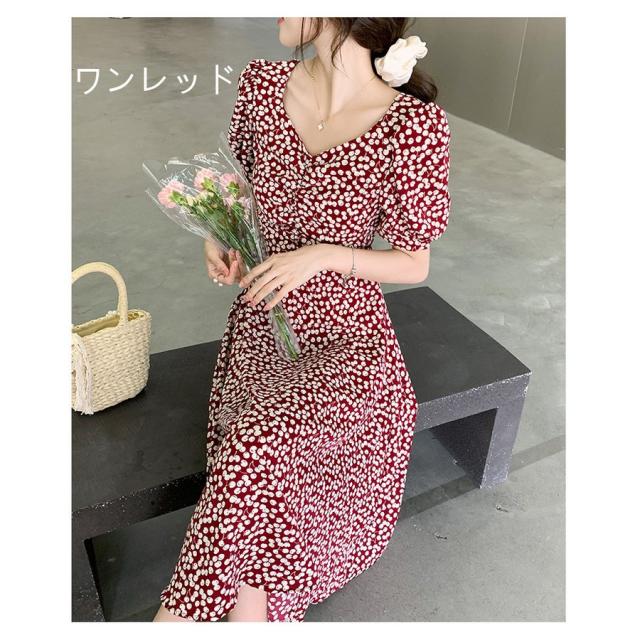 レディース花柄 シフォンワンピース春夏 プリント半袖ベアバック Aライン フレアスカート着痩せ オシャレ お出かけ 通勤リゾート新品