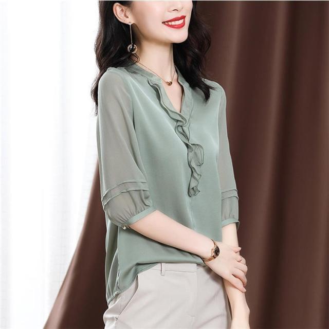 ブラウス レディース 40代 春夏新作 オシャレブラウス 半袖トップス Vネック 上品 大人 通勤OL ゆったり シャツ30代 50代