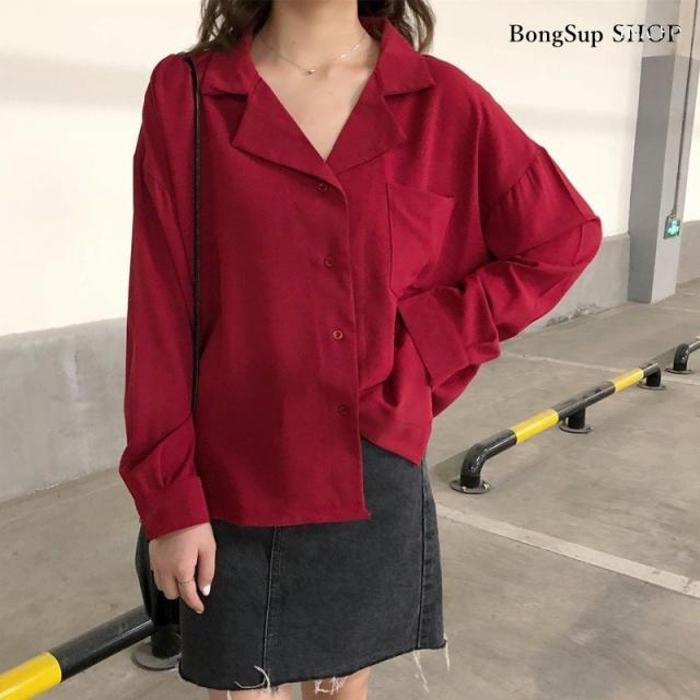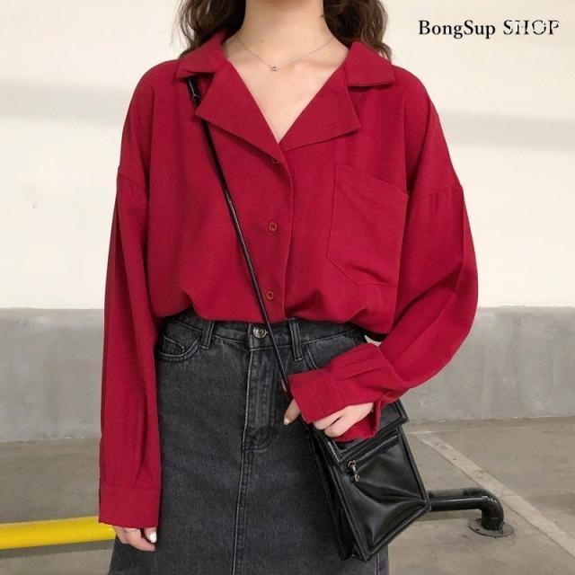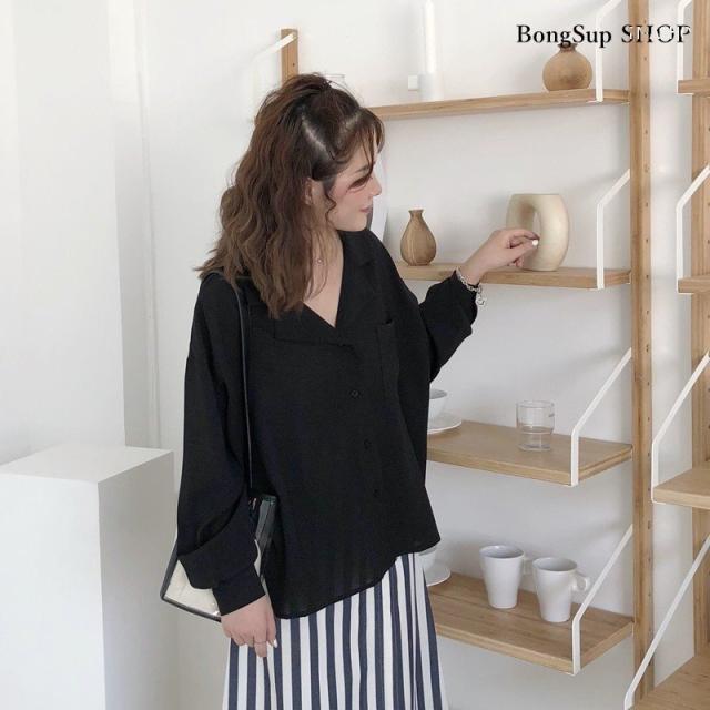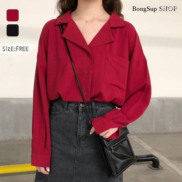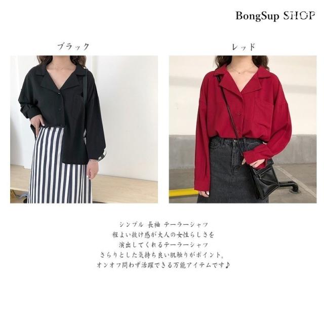 トップス レディース 秋 冬 長袖 シャツ ブラウス vネック ゆったり 無地 シンプル カジュアル テーラード ポケット付き 通勤 きれいめ オフィス