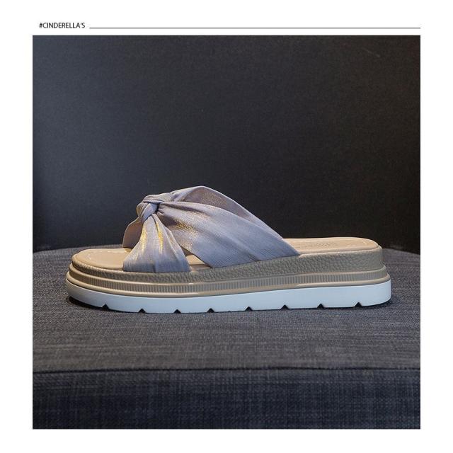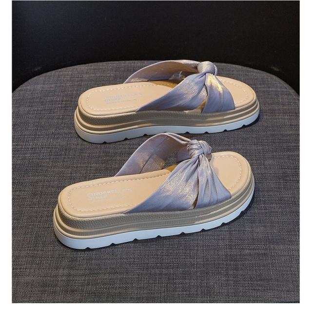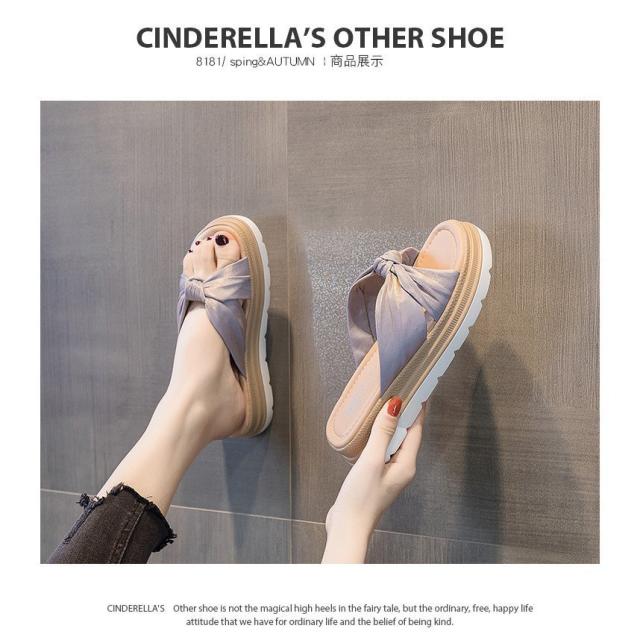 ミュール サンダル レディース 夏 厚底ヒール リボン スリッパサンダル 可愛い 美脚 歩きやすい 疲れない カジュアル 室外 外履き ビーチサンダル 美脚