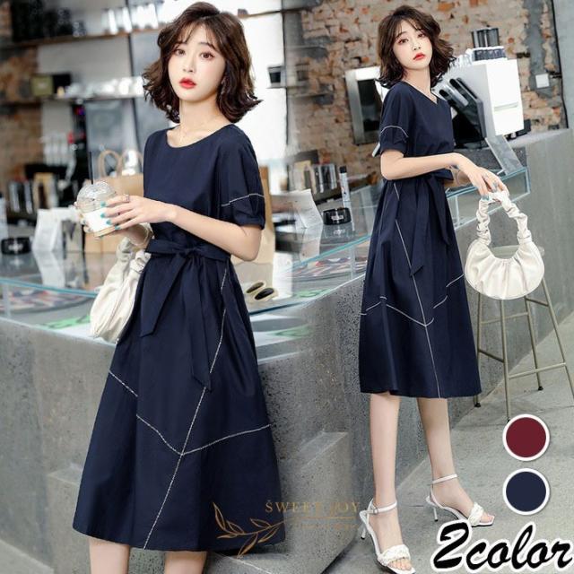 ワンピース レディース 40代 きれいめ膝丈ワンピース 春夏 半袖ワンピース 無地aラインスカート ゆったり オシャレ通勤 大人上品 着痩せ 30代50代 カジュアル