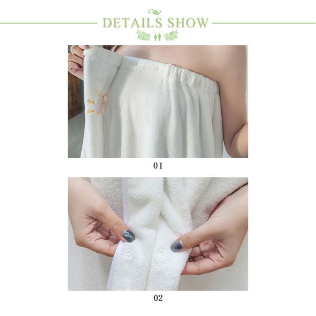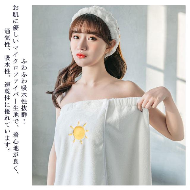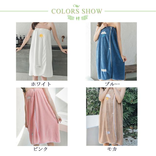 | 可愛くて簡単に着用できるワンピース風バスローブ! ふわふわ吸水性抜群!お肌に優しいマイクロファイバー生地で、着心地が良く、通気性、吸水性、速乾性に優れています。 素肌に気持ちい、優しい肌触り素材、お風呂上りを快適♪ 海やプール、ジムでの着替えに便利なので、季節を問わずお使いいただけます。 また旅行やジム時に持って行くにもかさばらないとても便利です。 お風呂上りにそのまま着で、水分も拭き取ってくれます。大判バスタオルとしても便利です。 着るバスタオルは季節を問わず、いろんな場所で大活躍しています。コンパクトに折りたたんで、お風呂上がりだけではなく、ジムやプール、温泉、旅行、エステにも便利な巻きタオルです。 | |