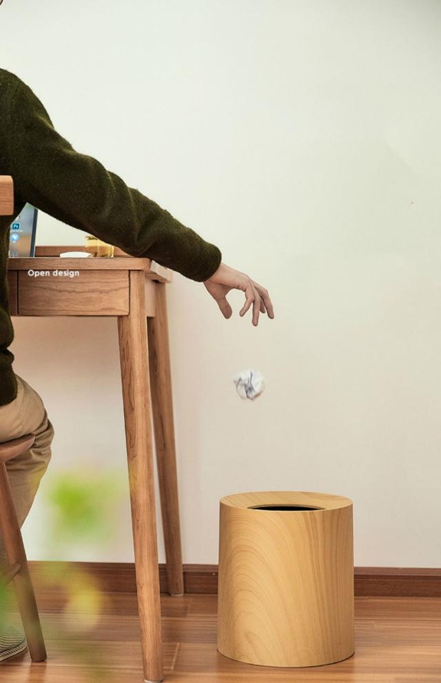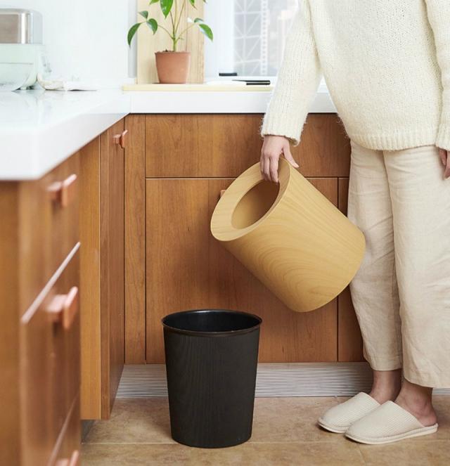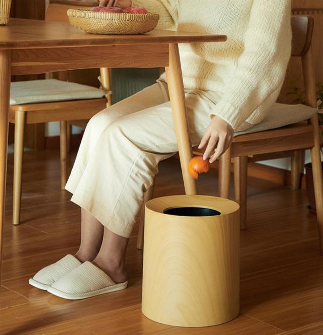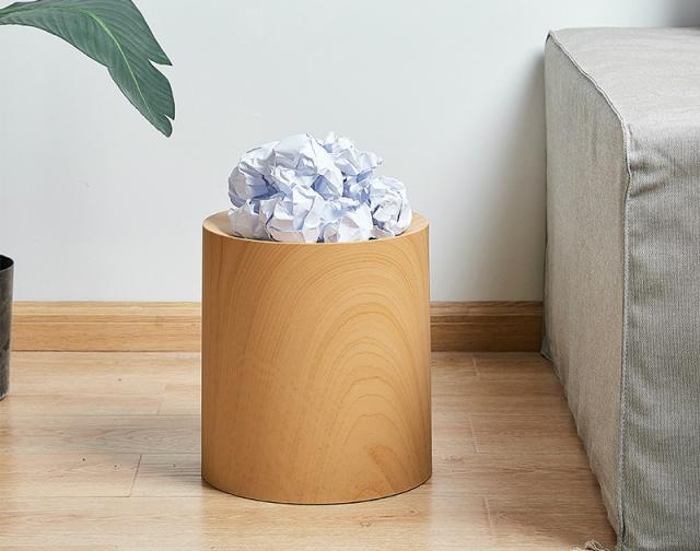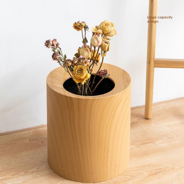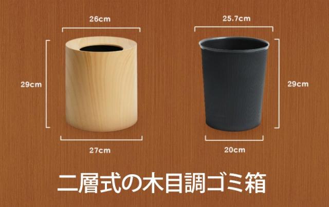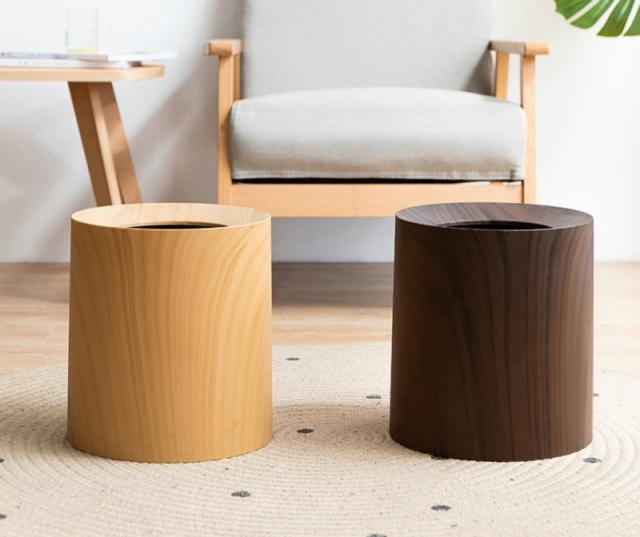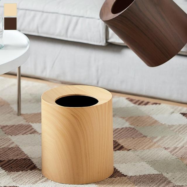 インテリア 寝具 収納 ゴミ箱 ラウンド型 リビング用品 ウッド調 ダストボックス 大きめ トラッシュボックス ブラウン