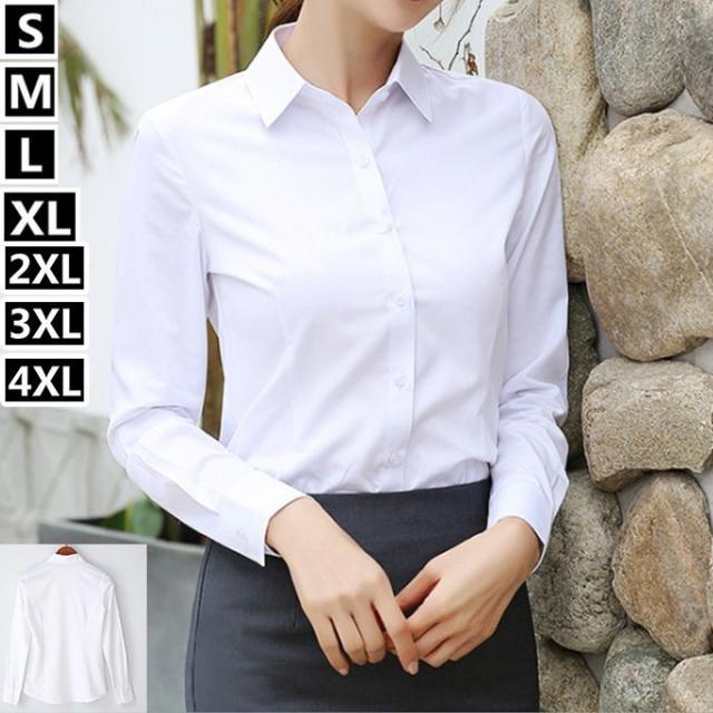 2021 新作 レディース トップス ブラウス 長袖 シャツ Yシャツ ワイシャツ カッターシャツ 隠しボタン 厚手ボタン ビジネス OL オフィス 事務所 フォーマル 就活