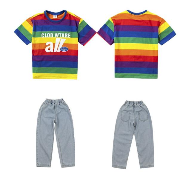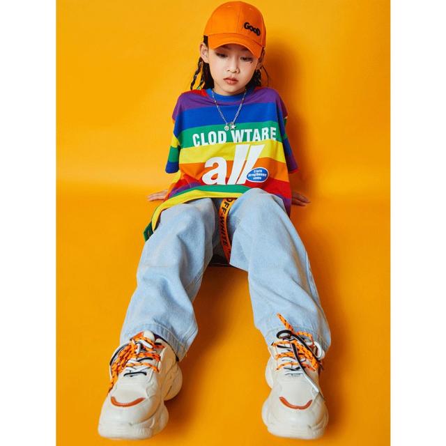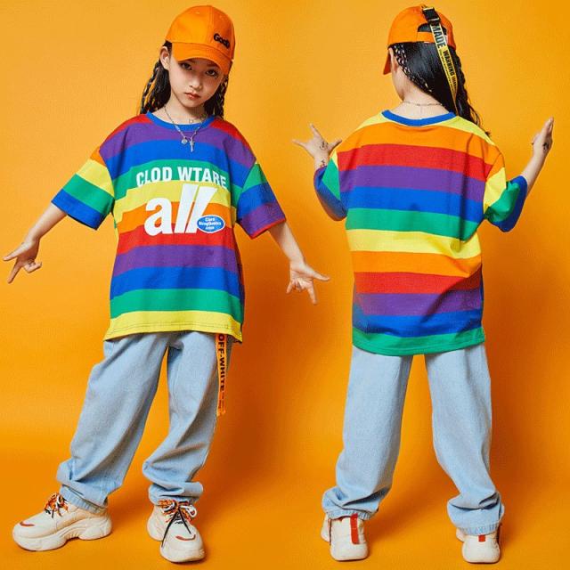 キッズ ダンス衣装 ヒップホップ HIPHOP セットアップ 子供 男の子 女の子 ジーンズ ダンストップス デニムパンツ ジャズダンス ステージ衣装 JAZZ 練習着