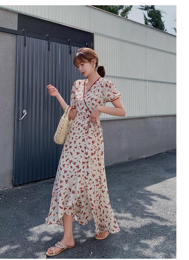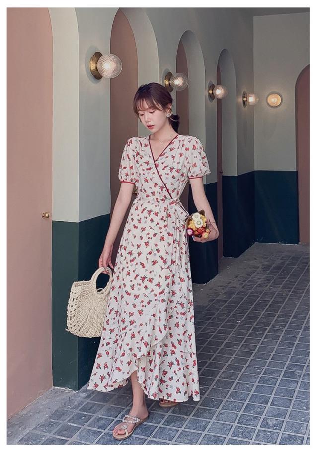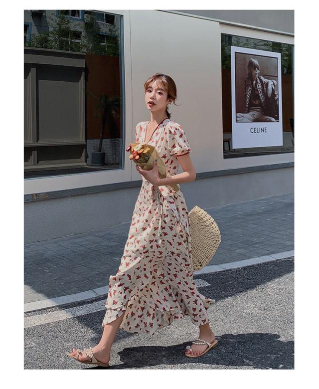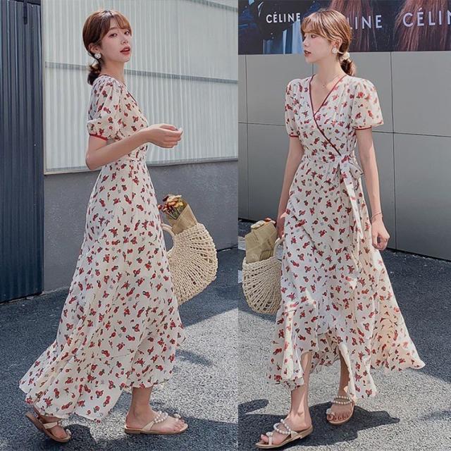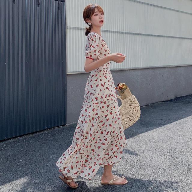 ワンピース レディース 40代 キレイめ ルロング丈ワンピース 春夏 半袖ワンピース 花柄 シフォンワンピース フレア Aライン ドレス オシャレ 上品 着痩せ