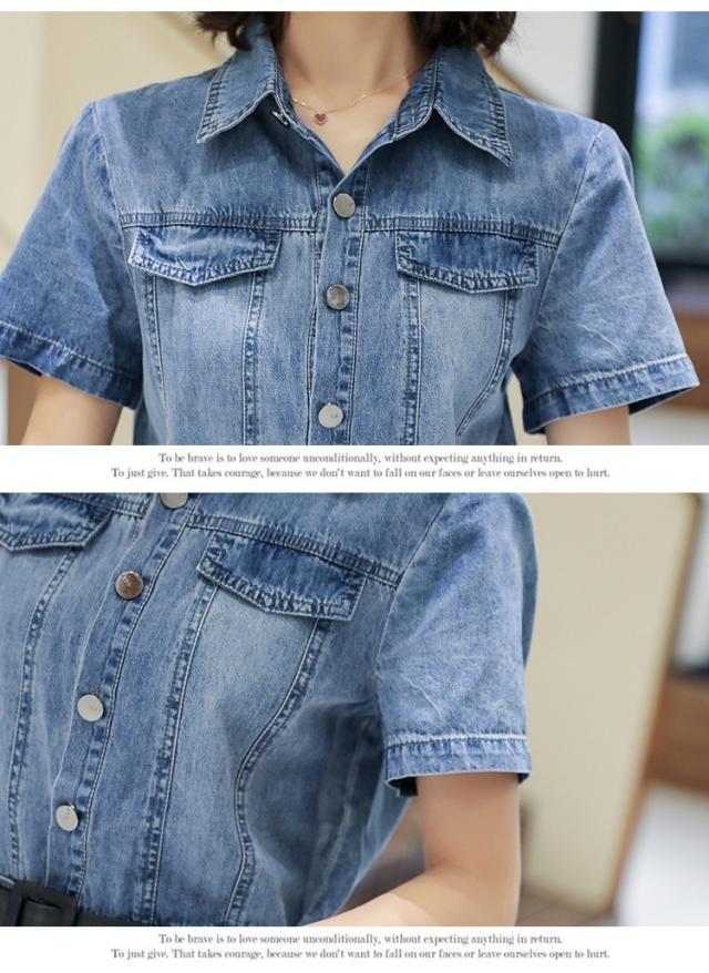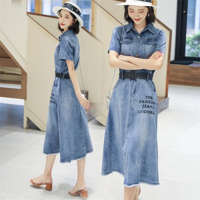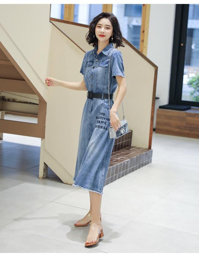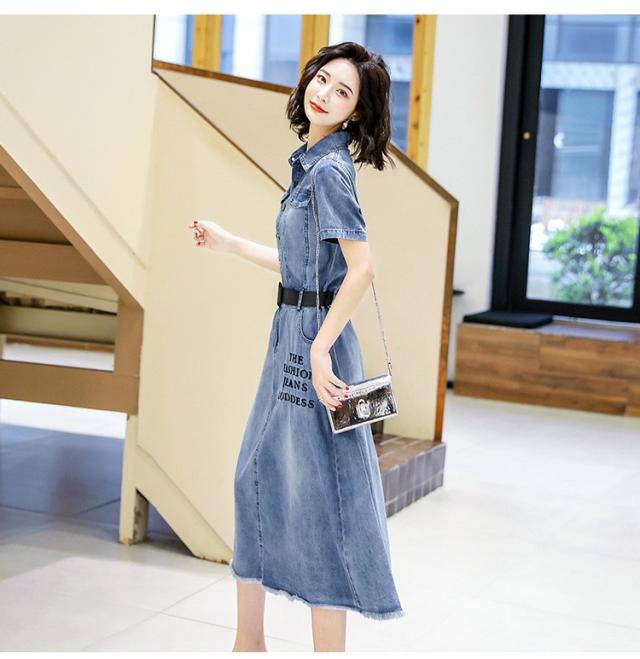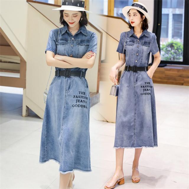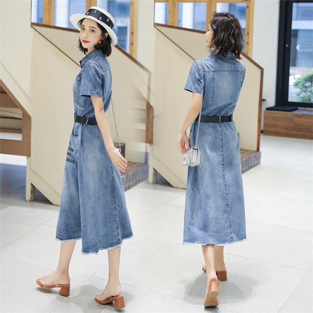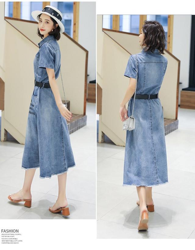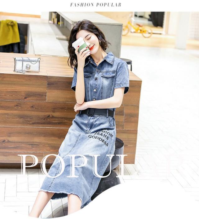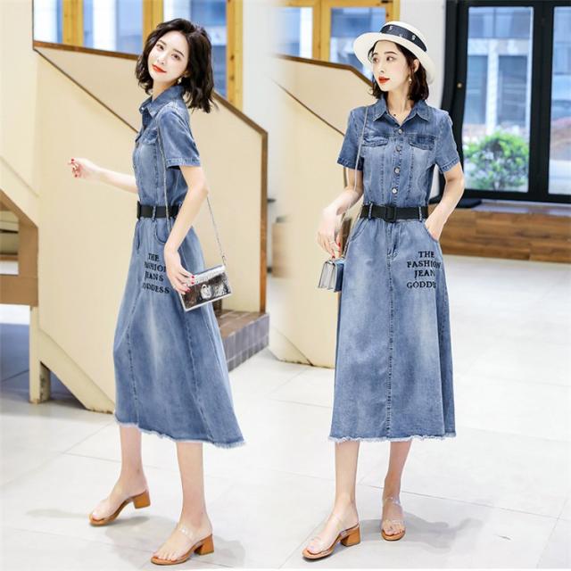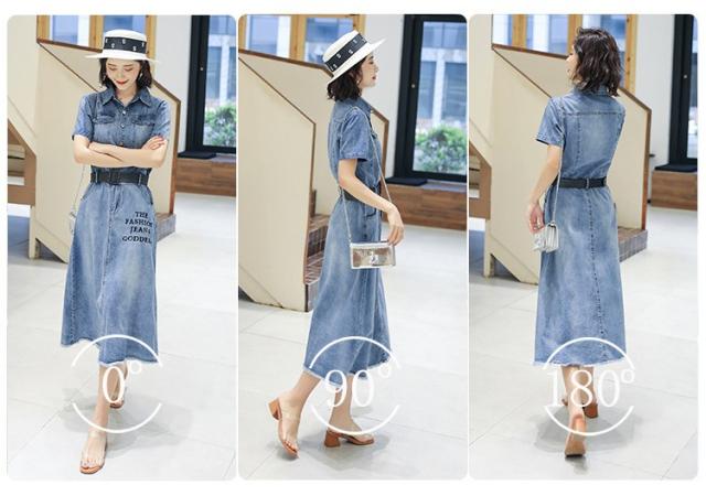 ワンピース レディース マキシワンピース 夏 デニムスカート カウボーイ ワンピース 半袖 ベルト付き ワンピース シャツワンピ 韓国風 ロング丈 着痩せ