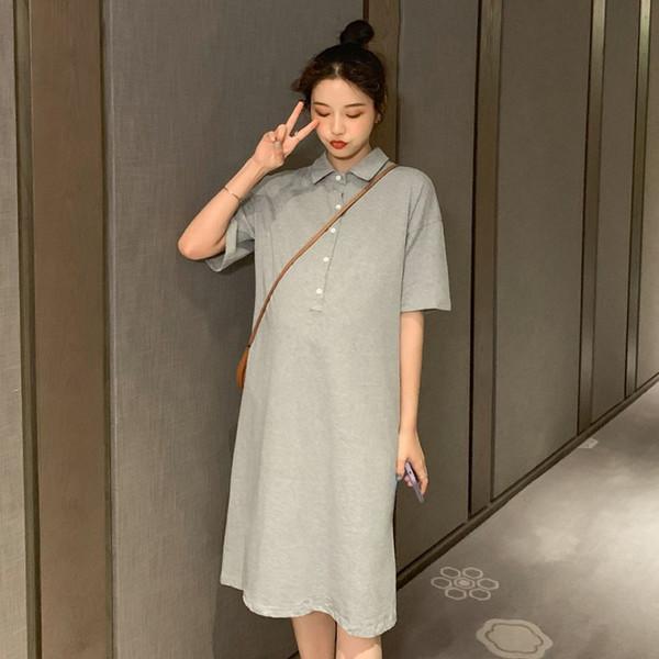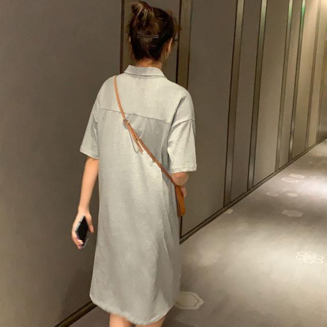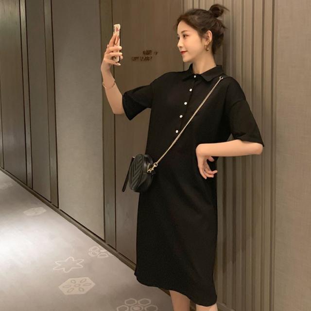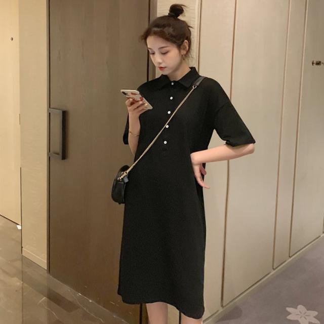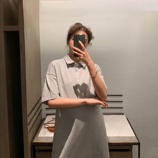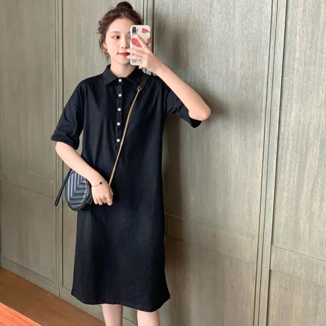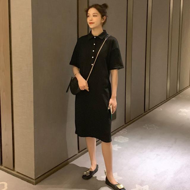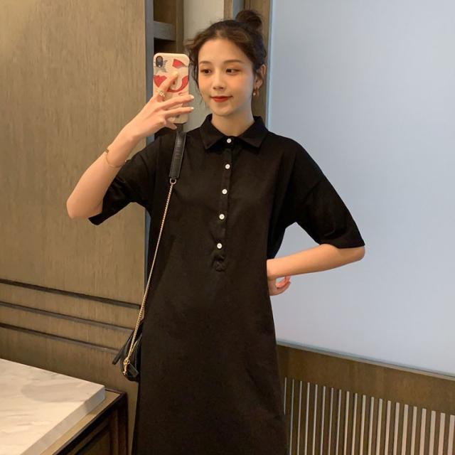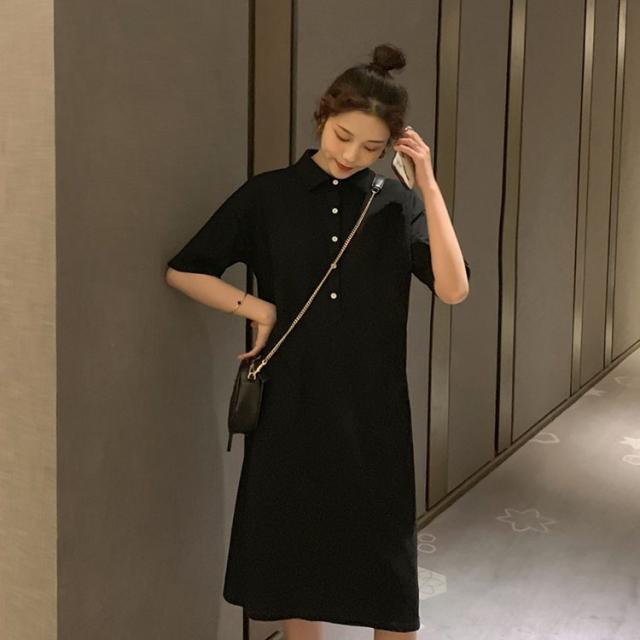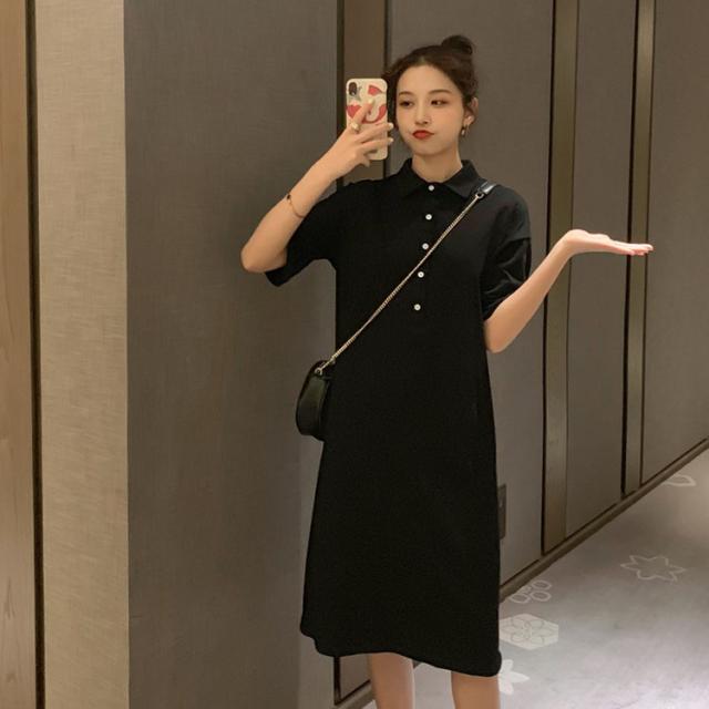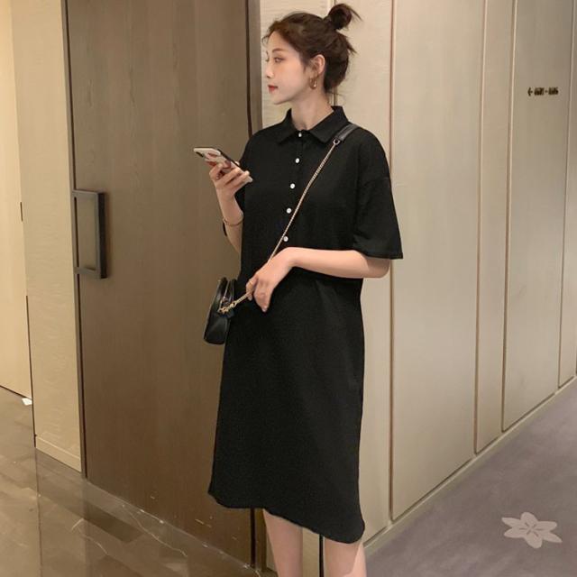 ワンピース レディース 夏 半袖 きれいめ ロング丈 Polo 膝丈ワンピース 韓国風 通勤ワンピース オシャレ カジュアル スポーツ ゆったり シンプル 2色