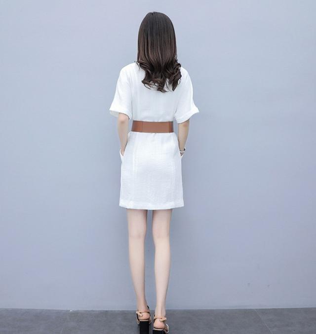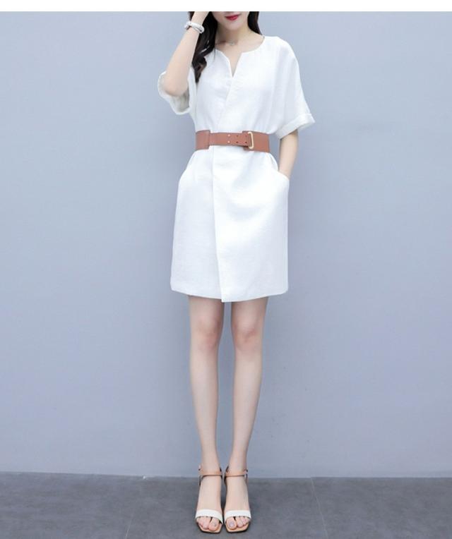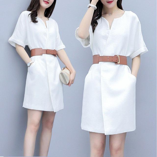 ワンピース レディース 40代 膝丈ワンピース 春夏 半袖ワンピース 綿麻スカート Vネック オシャレ 通勤 お出かけ 大人可愛い30代 50代