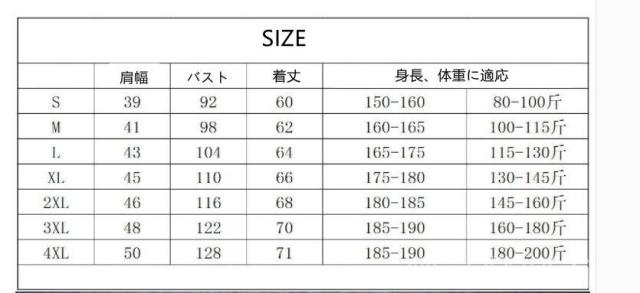| サイズについての説明 | 【サイズ】:S M L XL 2XL 3XL 4XL |