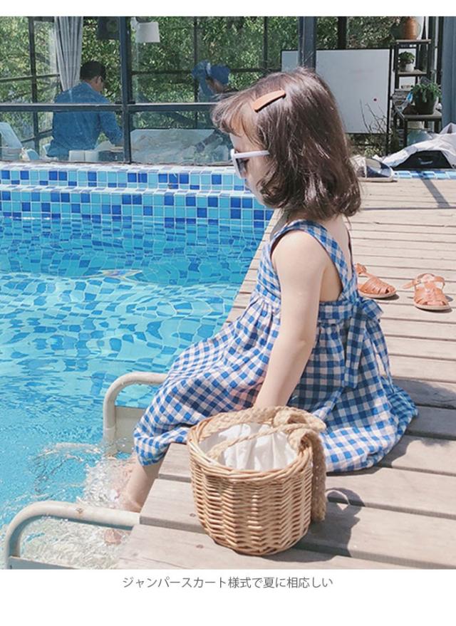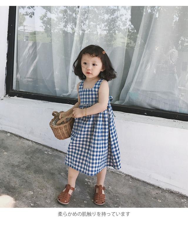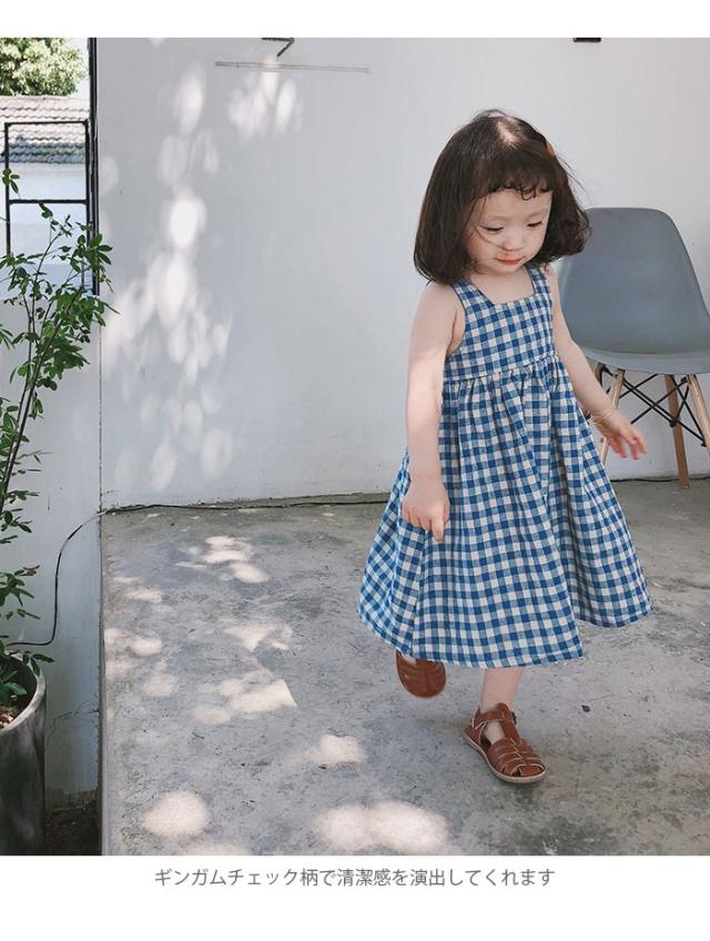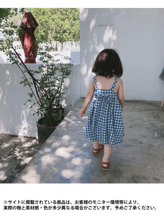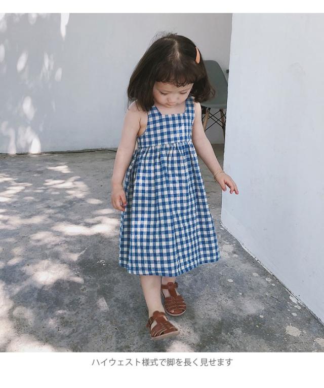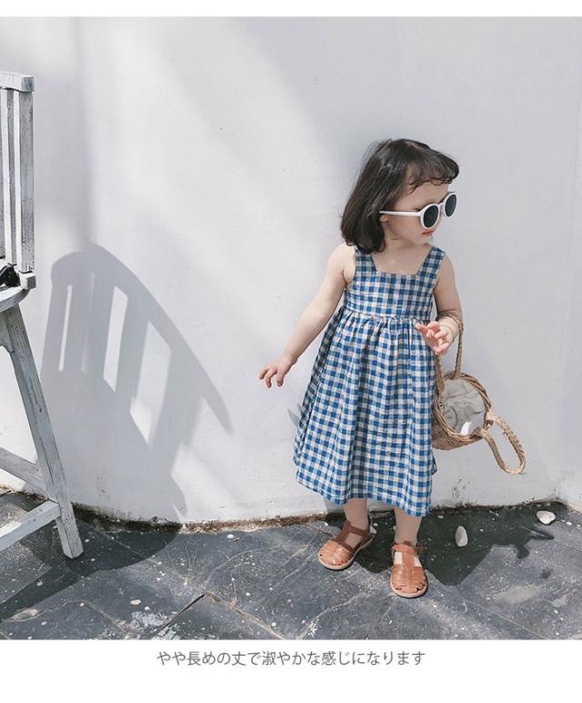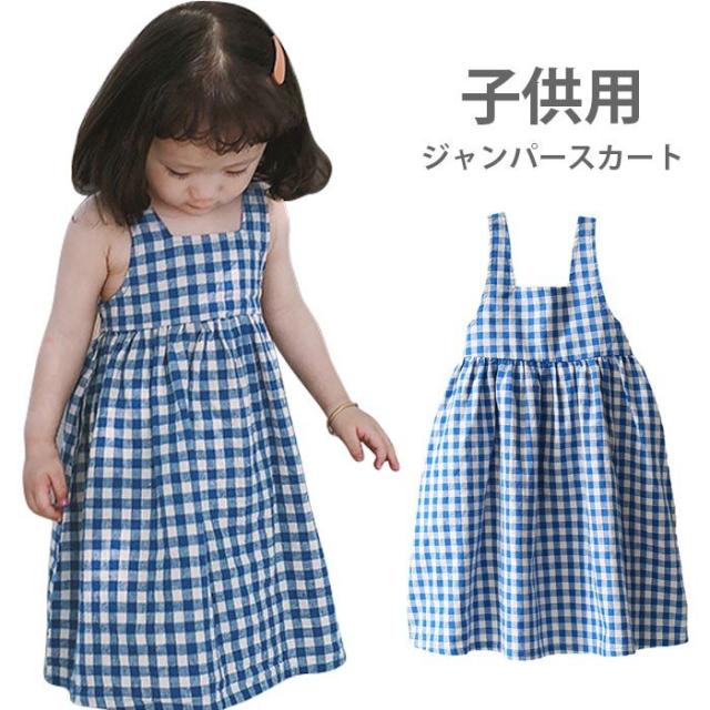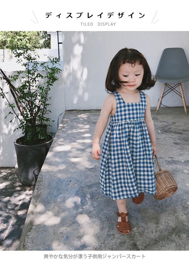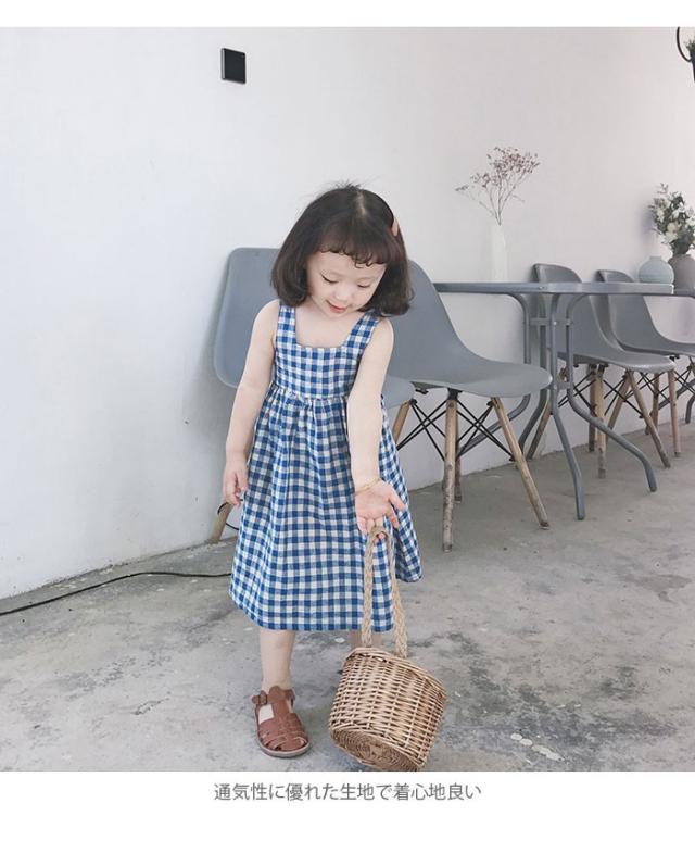 ワンピース 子供服 女の子 チェック柄 ミモレ丈ワンピース ノースリーブワンピース ジャンパースカート ギンガムチェック 爽やか キュート 可愛い 夏新作