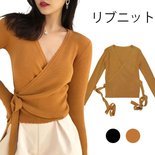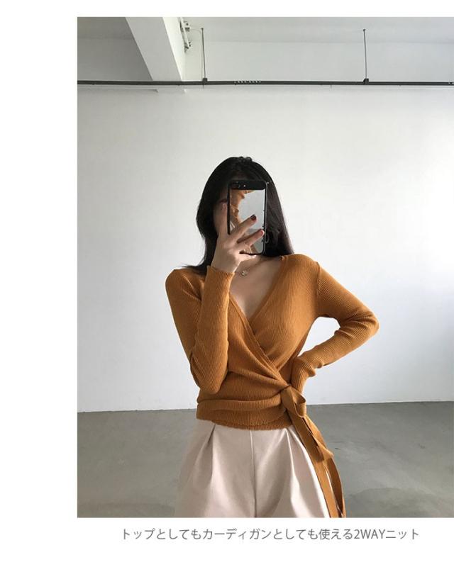 リブニット レディース ニットカーディガン ニットトップス 2WAYニット 2WAYトップス 無地ニット 薄手ニット Vネック 羽織 カーディガン ショート丈