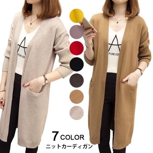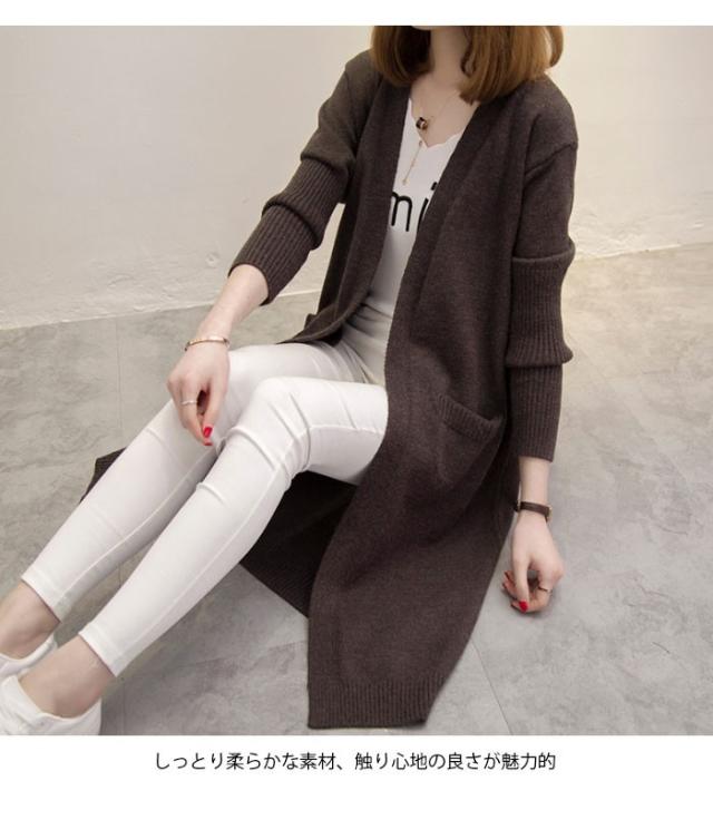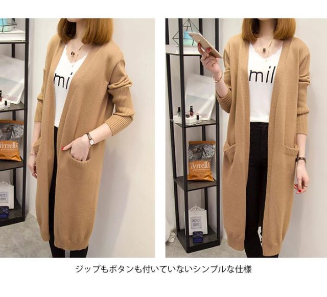 ロングカーディガン レディース ニットカーディガン ロング ロング丈 長袖 リブ 無地 ゆったり 羽織 アウター お洒落 カジュアル 秋新作