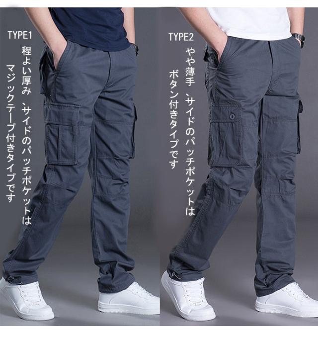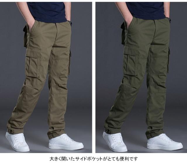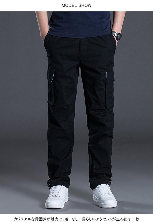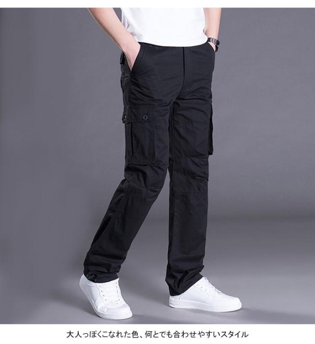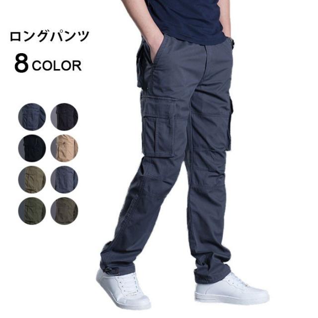 カーゴパンツ メンズ ワークパンツ ロングパンツ カジュアルパンツ ウエストゴム ポケット付き ボタン付き 純色 無地 ベーシックカラー ゆったり