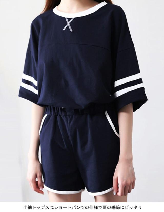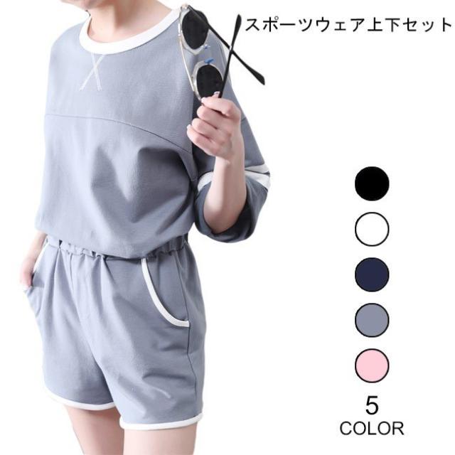 スポーツウェア レディース 上下2点セット 半袖 ショートパンツ ゆったり 部屋着 ヨガ 稽古 女性用 セットアップ 夏物 カジュアル 短パン