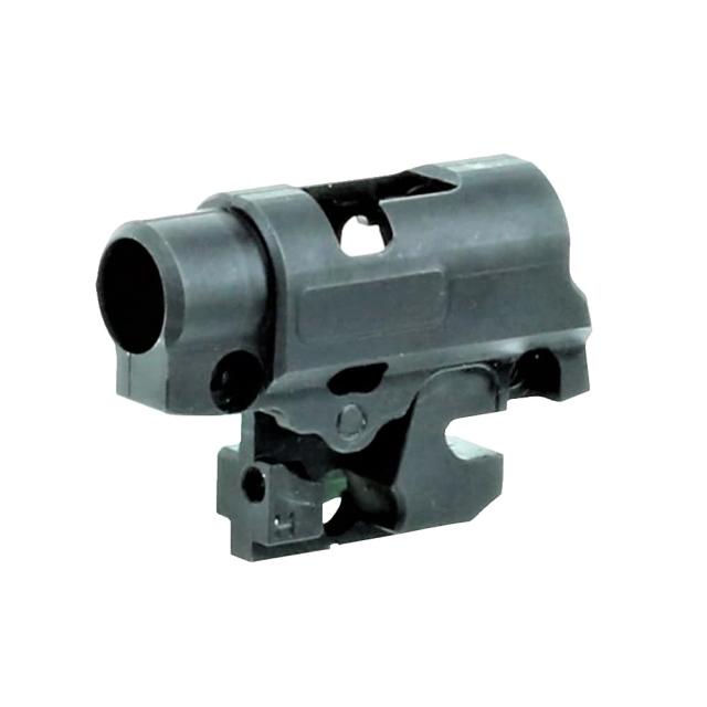純正の亜鉛合金製パーツよりも強度の高いスチール製。ブローバックの衝撃による割れや歪みへの耐性が向上。