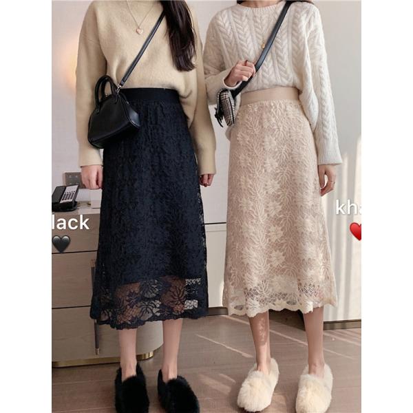 レース 総レース 上品 かわいい ニット ニットスカート Hライン カジュアル