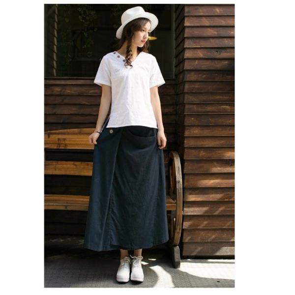 スカート 巻きスカート風 ロング丈 リネン Aライン ウエストゴム カジュアル シンプル 20代 30代 40代 ママ 春 夏 送料無料