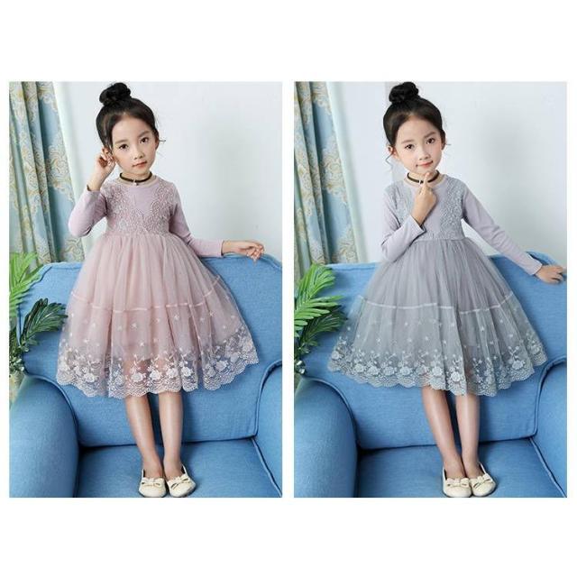 【子供レースチュールドレス 長袖 裏起毛】