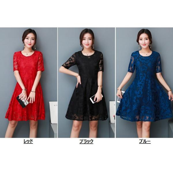 ワンピース ショート丈 五分袖 春 ひざ上丈 総レース パーティードレス おしゃれ 二次会 フォーマル 大きいサイズ 人気商品 送料無料
