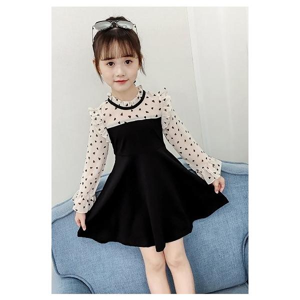 子供服 ワンピース 女の子 スカート ドレス 長袖 ハート柄 無地