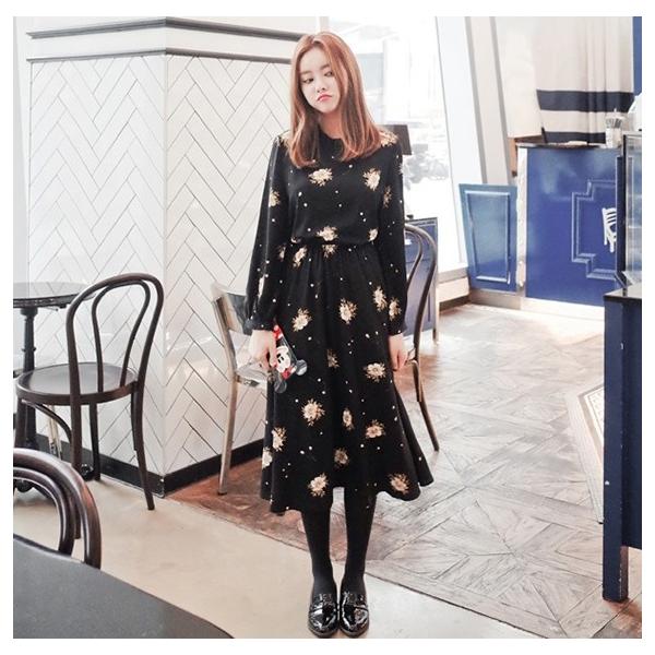 ワンピース 長袖 新商品 花柄 ひざ丈 フレアワンピース 通学 デート ル フレア 上品 デイリー 可愛い お出かけ デート 人気商品 送料無料