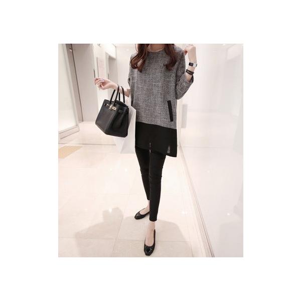 チュニック 七分袖 バイカラー チュニック トップス カットソー ワンピース 上品 大人 ママ 通勤 通学 デート 送料無料 体型カバー