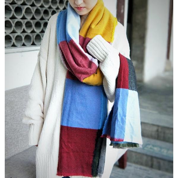 【冬新商品 ウール混 ロング マルチカラー 大判ドストール】