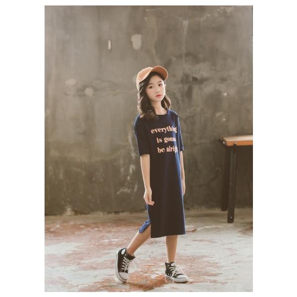 ワンピース 子供服 女の子 スカート 半袖 五分袖 カジュアル スリット シンプル ルームウエア ジュニア キッズ 春 夏 人気商品 送料無料