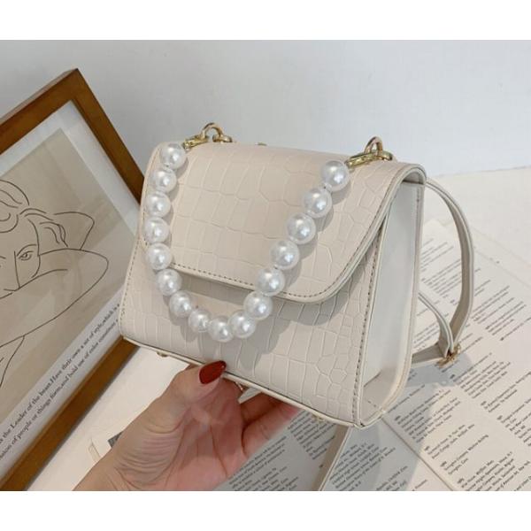 パールの持ち手がアクセントになったスクエアミニバッグ☆