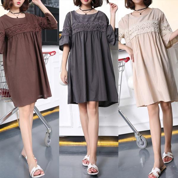ワンピース チュニック ミニ丈ワンピース 半袖 カジュアル レース 大きいサイズ 花柄 ワンピース フリル トップス レディース 送料無料