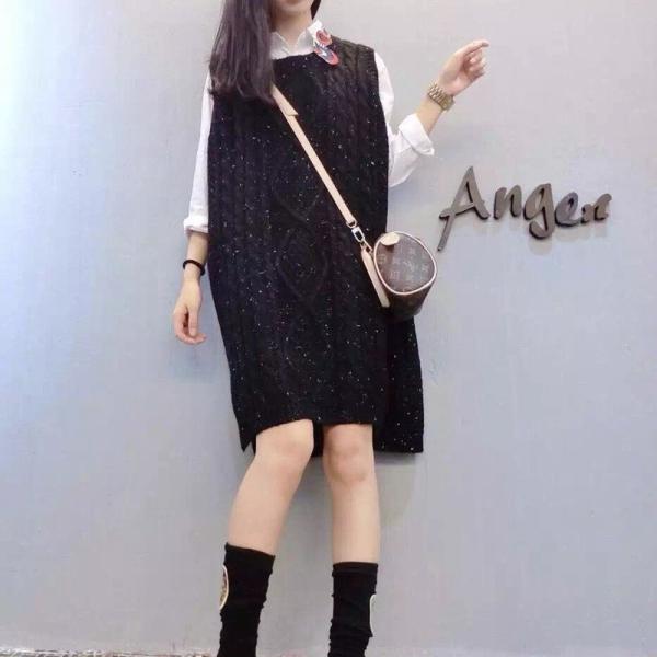 ワンピース ミニ丈 ノースリーブ サイド スリット ケーブル ニット ゆったり Uネック 可愛い 暖かい ケーブルニット ガーリー 着やせ効果 2017