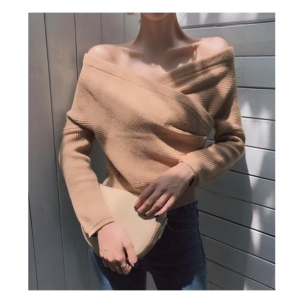 トップス ニット セーター オフショル 長袖 肩出し クロスセーター ニットセーター 秋 冬 デコルテ見せ タイト きれいめ 上品 送料無料